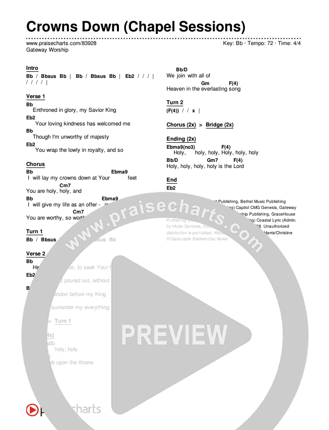 Download the PDF Chord Charts for Crowns Down (Chapel Sessions) by Gateway Worship, from the album Chapel Sessions.