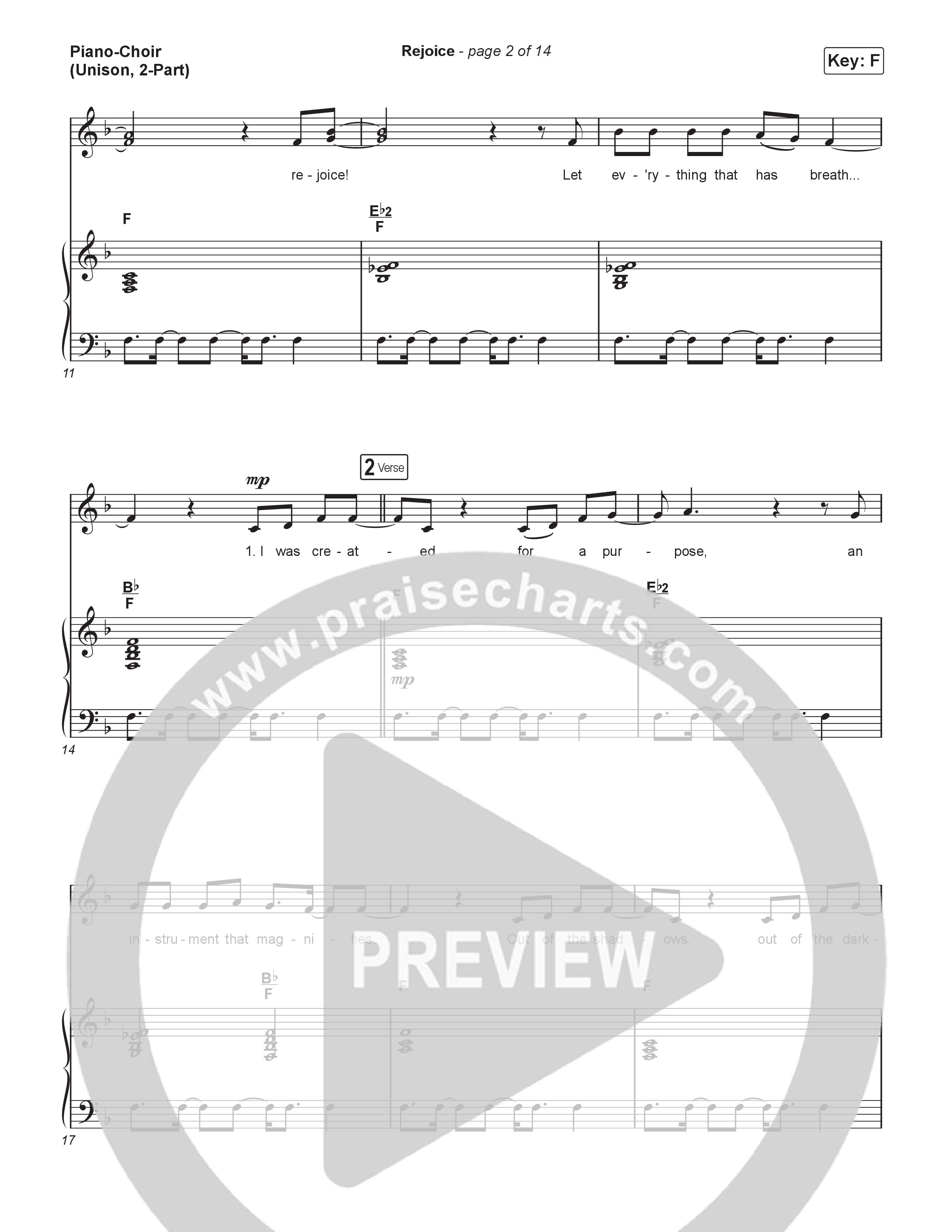 Download the PDF sheet music for Rejoice (Unison/2-Part) by Charity Gayle / Arr. Luke Gambill, from the album Rejoice. This song was arranged by Daniel Galbraith / Luke Gambill in the key of F.