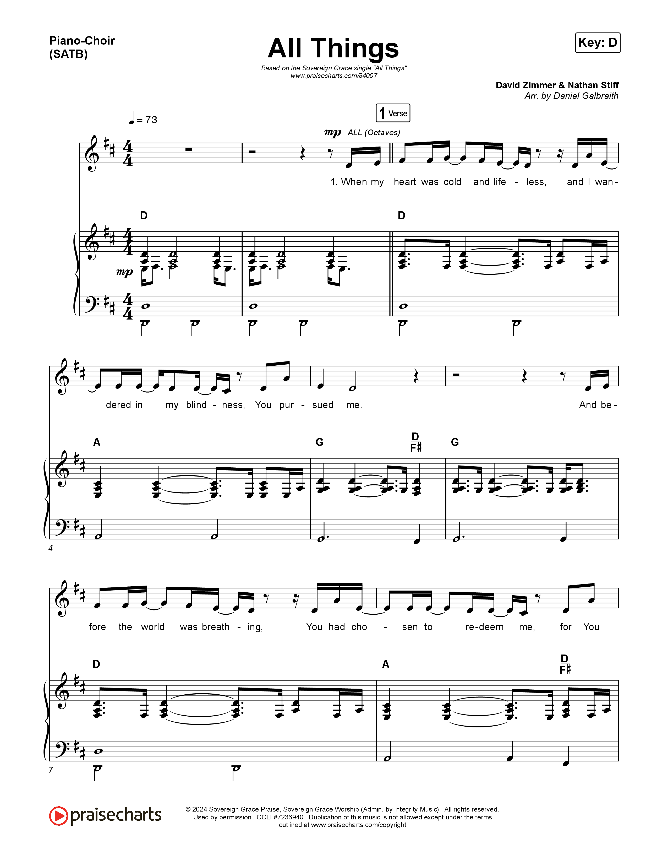 Download the sheet music for All Things (Live) by Sovereign Grace, from the album All Things. This song was arranged by Daniel Galbraith in the key of D.