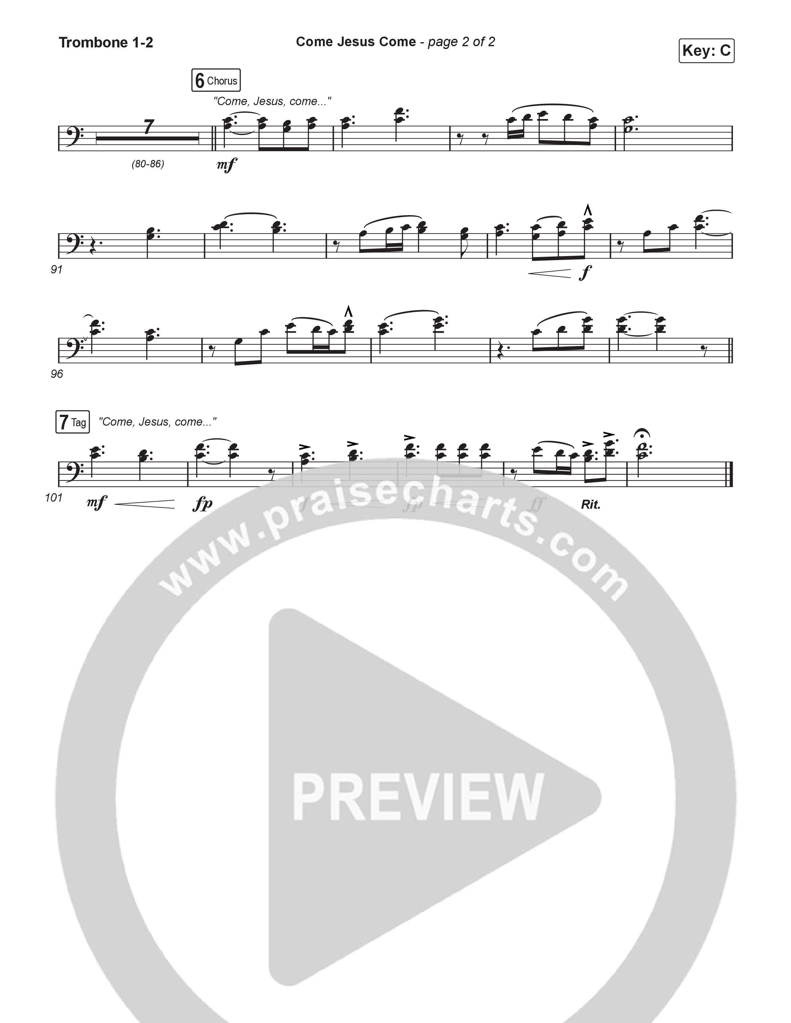 Download the Trombone 1,2 sheet music for Come Jesus Come (Unison/2-Part) by CeCe Winans / Arr. Luke Gambill, from the album More Than This. This song was arranged by Luke Gambill / Daniel Galbraith / Grant Wall in the key of C.