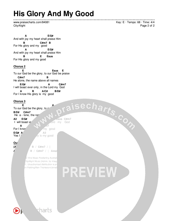 His Glory And My Good Chords PDF (CityAlight)
