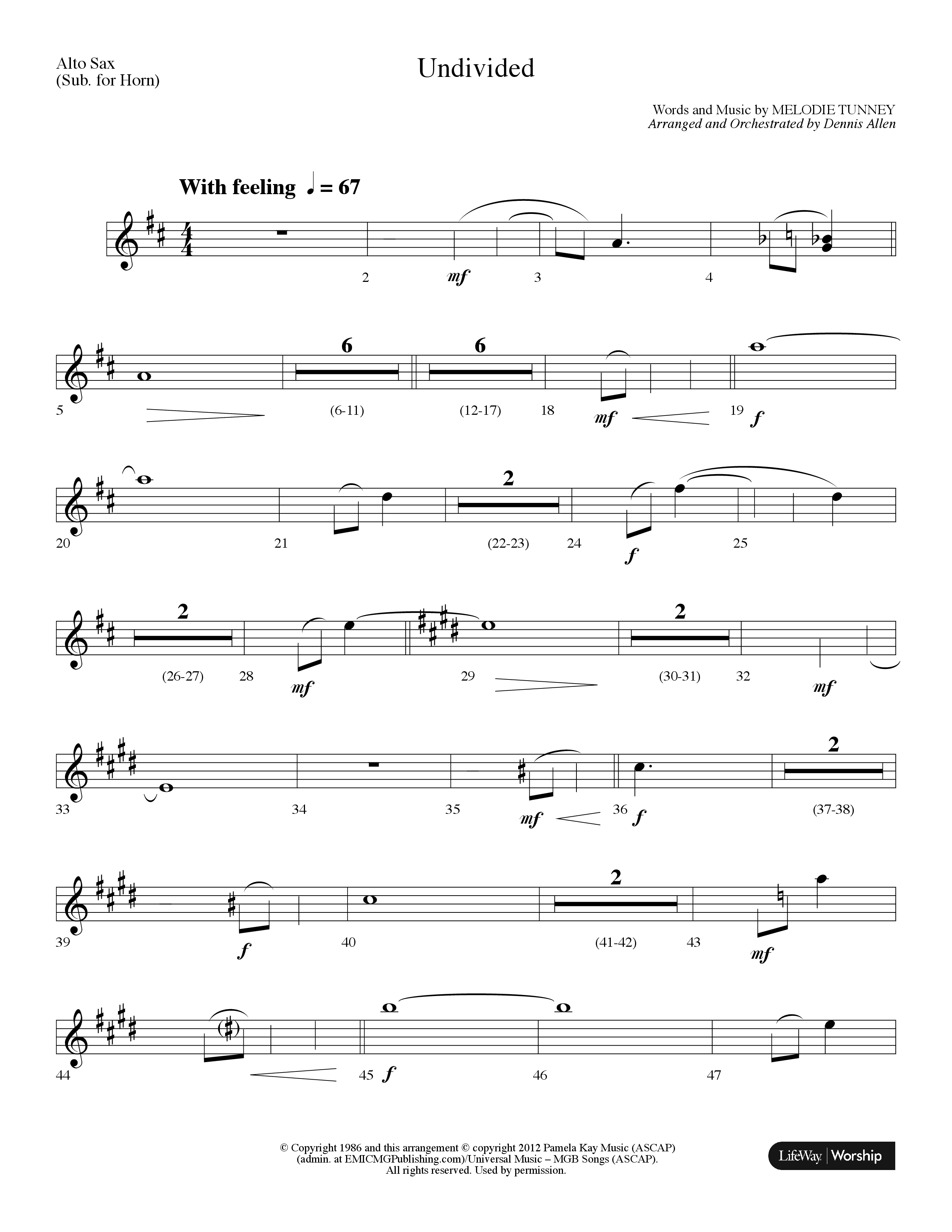 Download the AltoSax sheet music for Undivided (Choral Anthem SATB) by Lifeway Choral / Arr. Dennis Allen, from the album Non-Seasonal Choral Anthems. This song was arranged by Dennis Allen in the key of F.