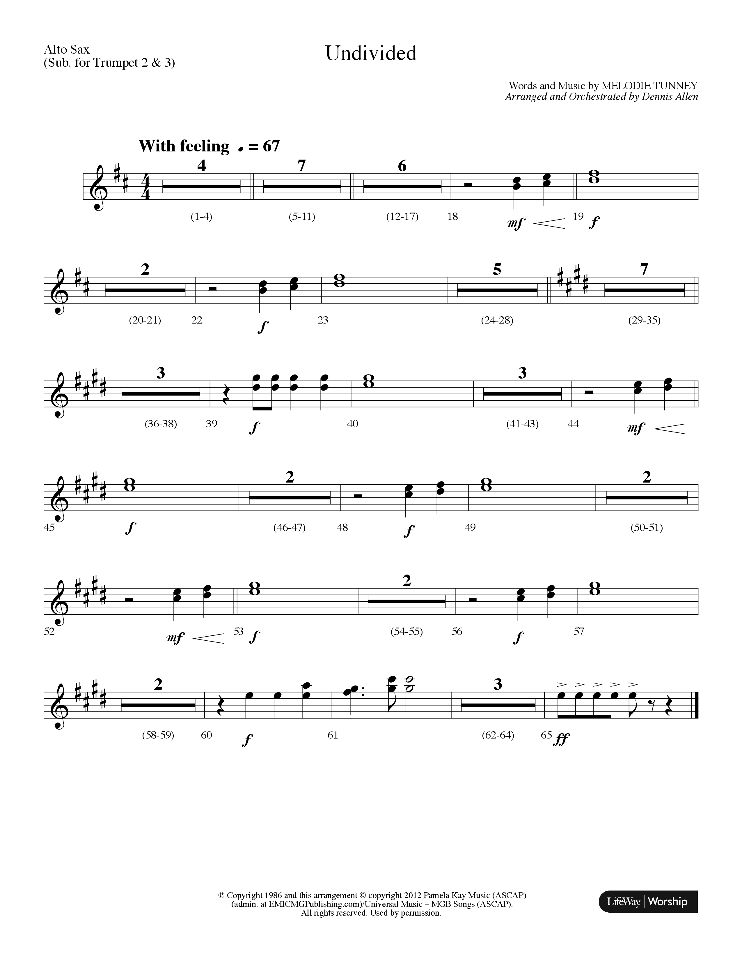 Undivided (Choral Anthem SATB) Alto Sax Sheet Music PDF (Lifeway Choral / Arr. Dennis Allen)