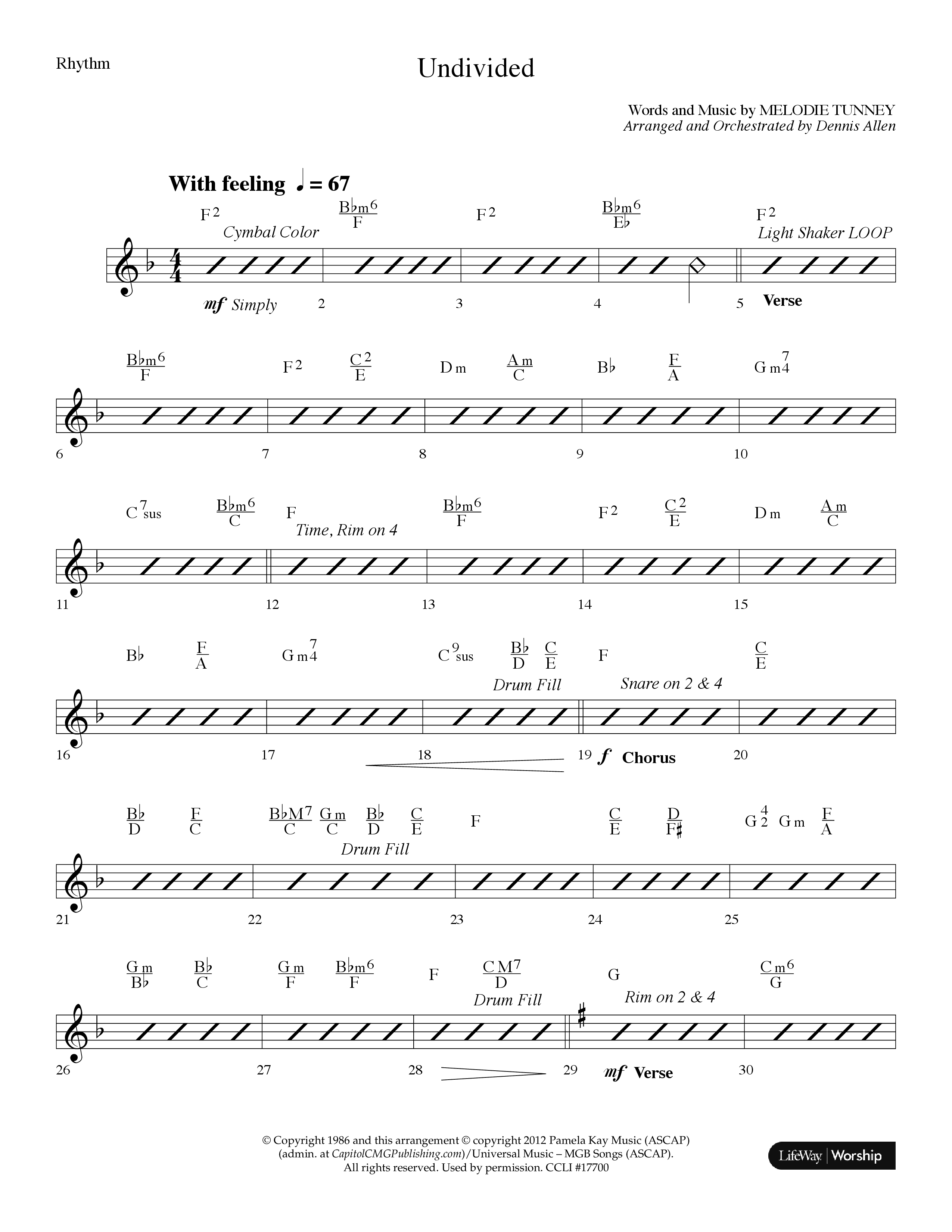 Download the sheet music for Undivided (Choral Anthem SATB) by Lifeway Choral / Arr. Dennis Allen, from the album Non-Seasonal Choral Anthems. This song was arranged by Dennis Allen in the key of F.