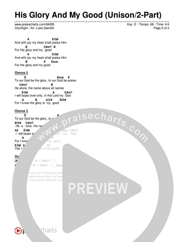 Download the PDF Chord Charts for His Glory And My Good (Unison/2-Part) by CityAlight / Arr. Luke Gambill, from the album His Glory And My Good. This song was arranged by Grant Wall / Luke Gambill / Daniel Galbraith in the key of E.
