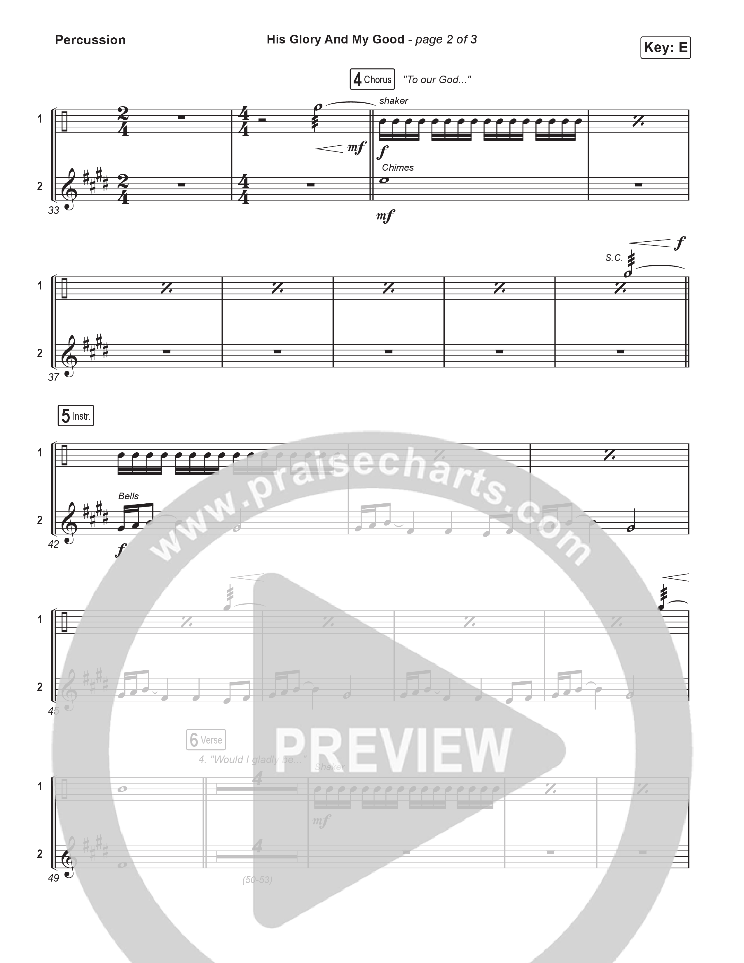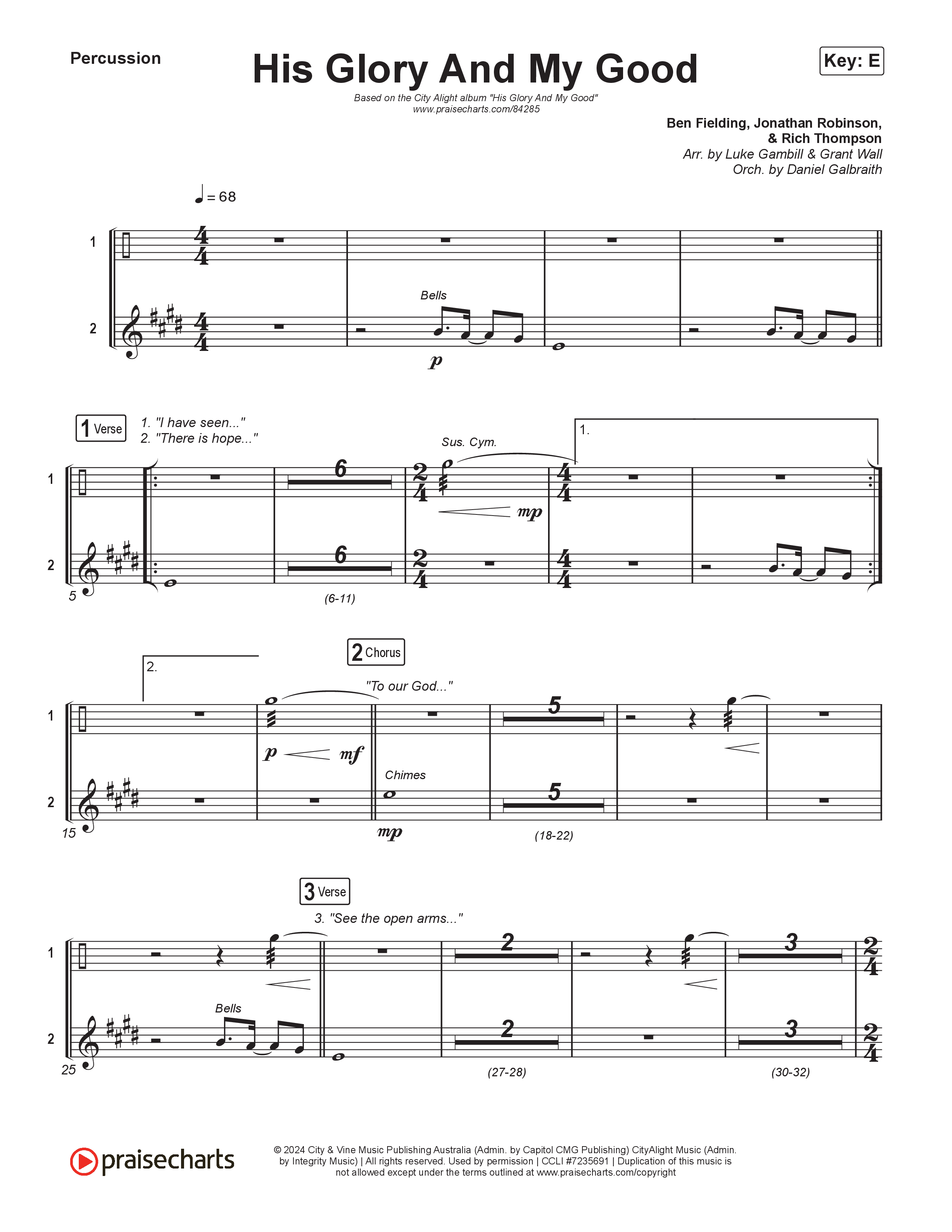 Download the percussion sheet music for His Glory And My Good (Unison/2-Part) by CityAlight / Arr. Luke Gambill, from the album His Glory And My Good. This song was arranged by Grant Wall / Luke Gambill / Daniel Galbraith in the key of E.