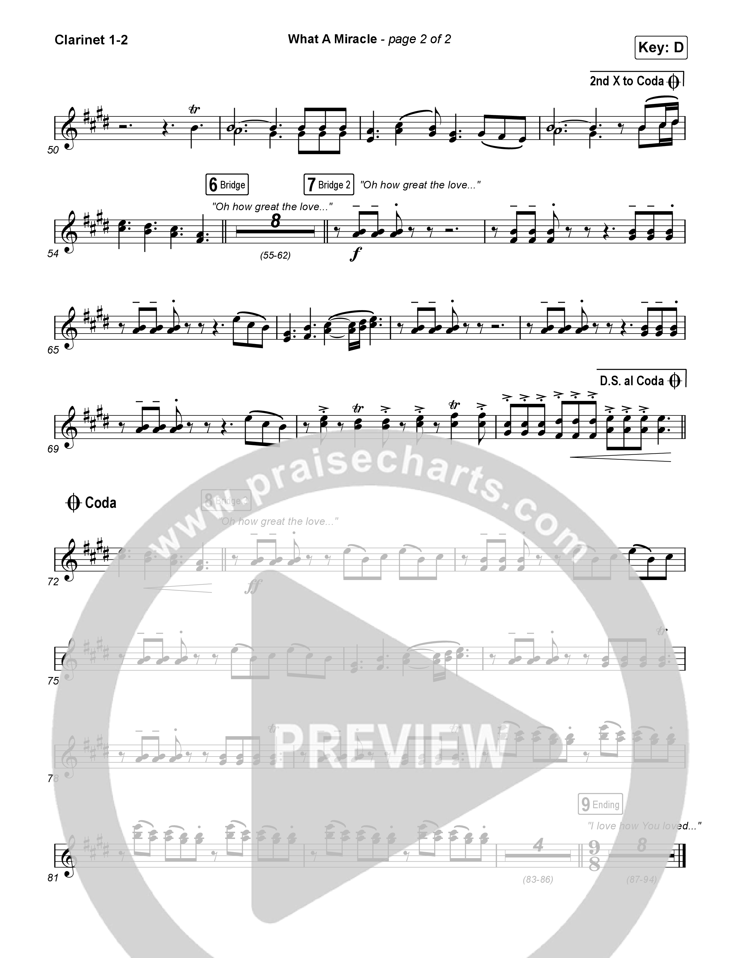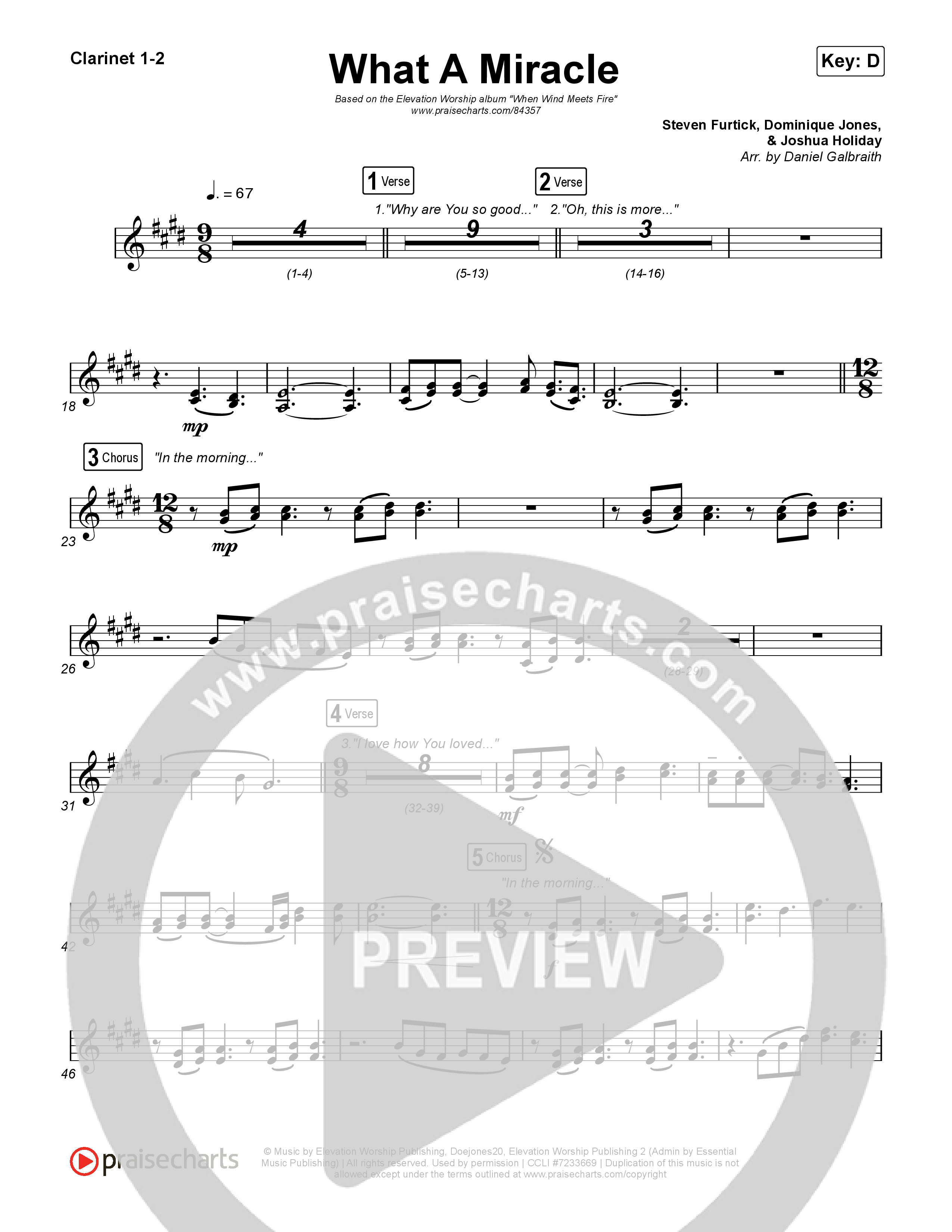 Download the Clarinet sheet music for What A Miracle by Elevation Worship / Chris Brown / Leeland Mooring, from the album When Wind Meets Fire. This song was arranged by Daniel Galbraith in the key of C, D.