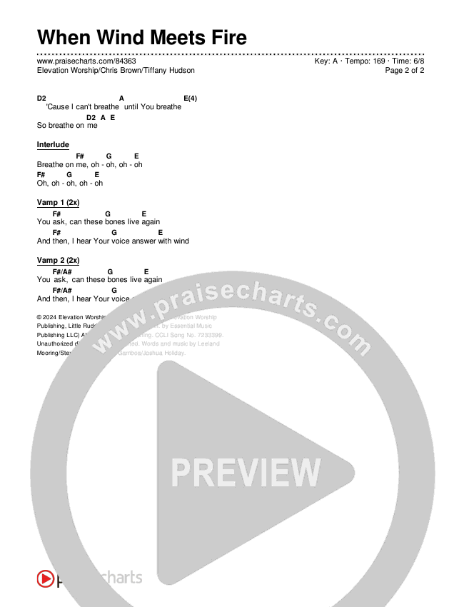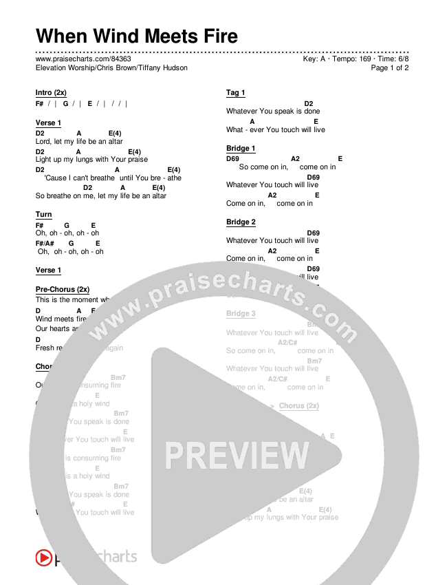 When Wind Meets Fire Chords PDF (Elevation Worship / Chris Brown / Tiffany Hudson)