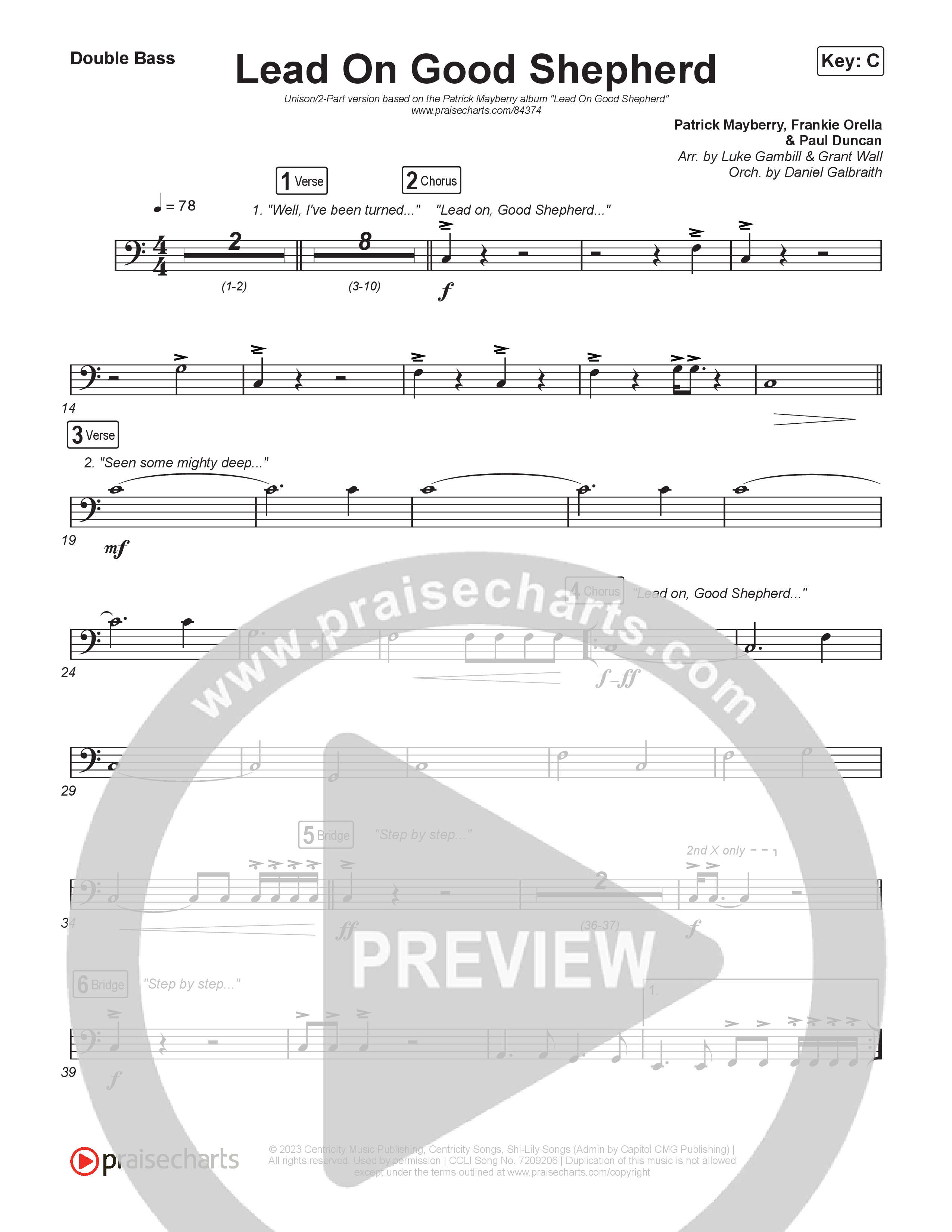 Lead On Good Shepherd (Unison/2-Part) String Bass Sheet Music PDF (Patrick Mayberry / Crowder / Arr. Luke Gambill)