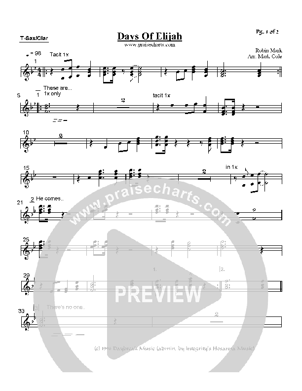 Download the Orchestration for Days of Elijah by Robin Mark, from the album Revival In Belfast. This song was arranged by Mark Cole in the key of Ab, G.