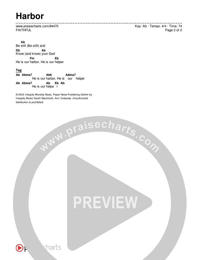 Download the PDF Chord Charts for Harbor by FAITHFUL, from the album Harbor.