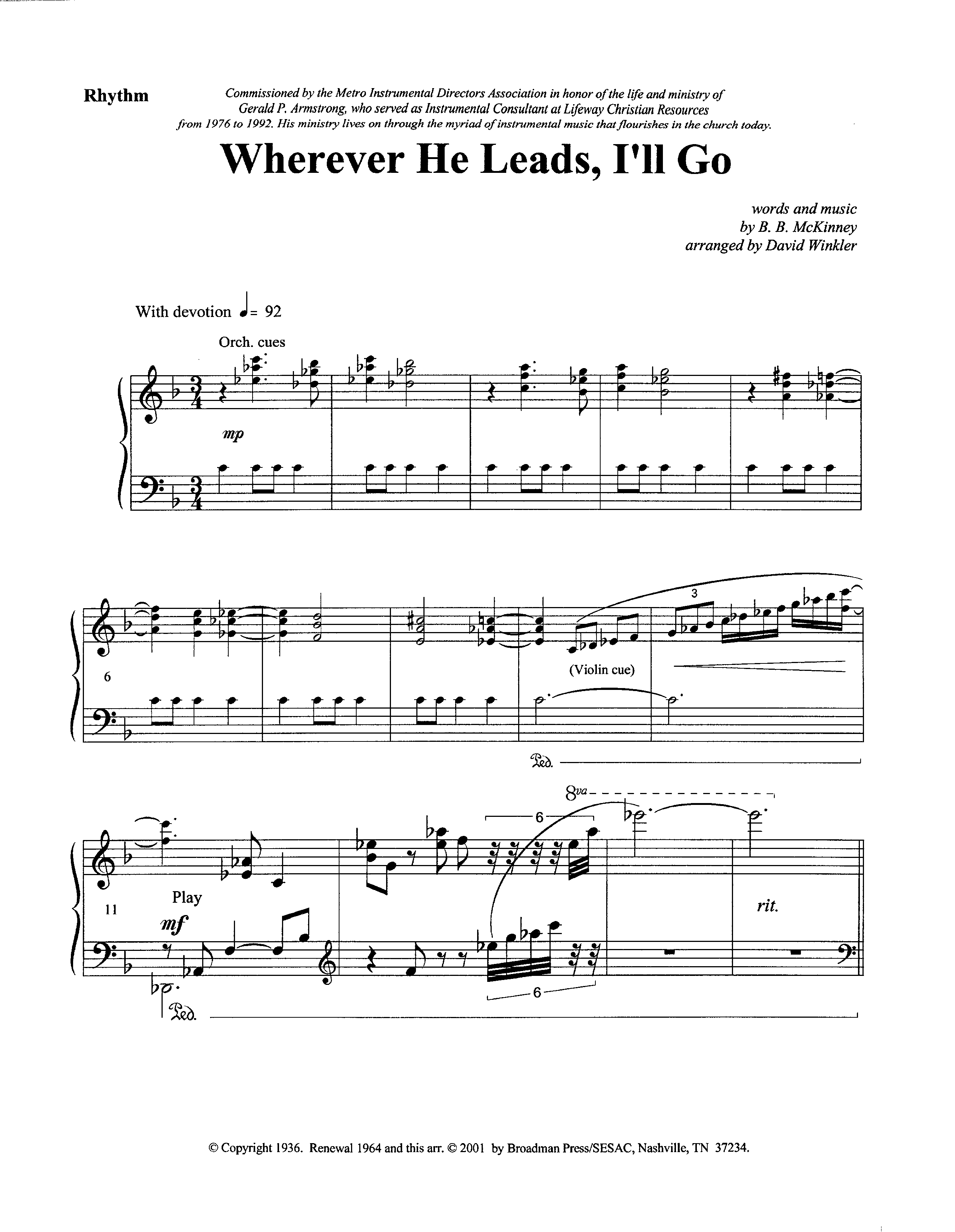 Wherever He Leads I’ll Go (with Solo Euphonium or Baritone TC) (Instrumental) Sheet Music PDF (Lifeway Worship / Arr. David Winkler)