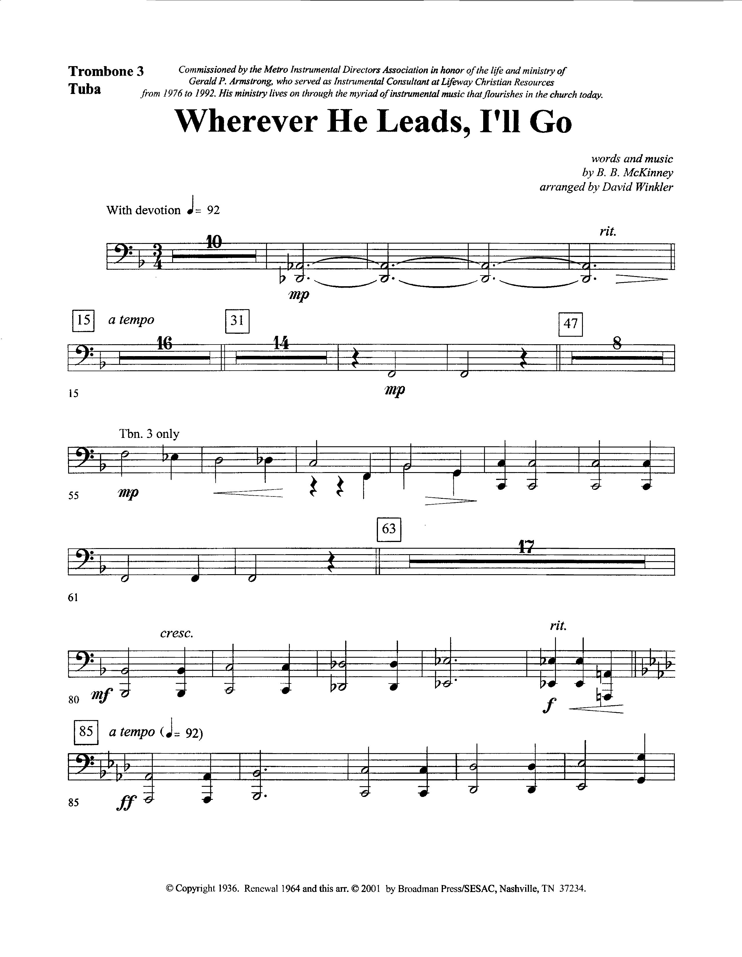 Wherever He Leads I’ll Go (with Solo Euphonium or Baritone TC) (Instrumental)