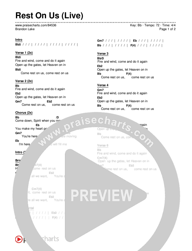 Rest On Us (Live) Chords PDF (Brandon Lake)
