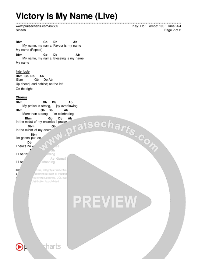 Download the PDF Chord Charts for Victory Is My Name (Live) by Sinach, from the album Victory Sounds (Live).