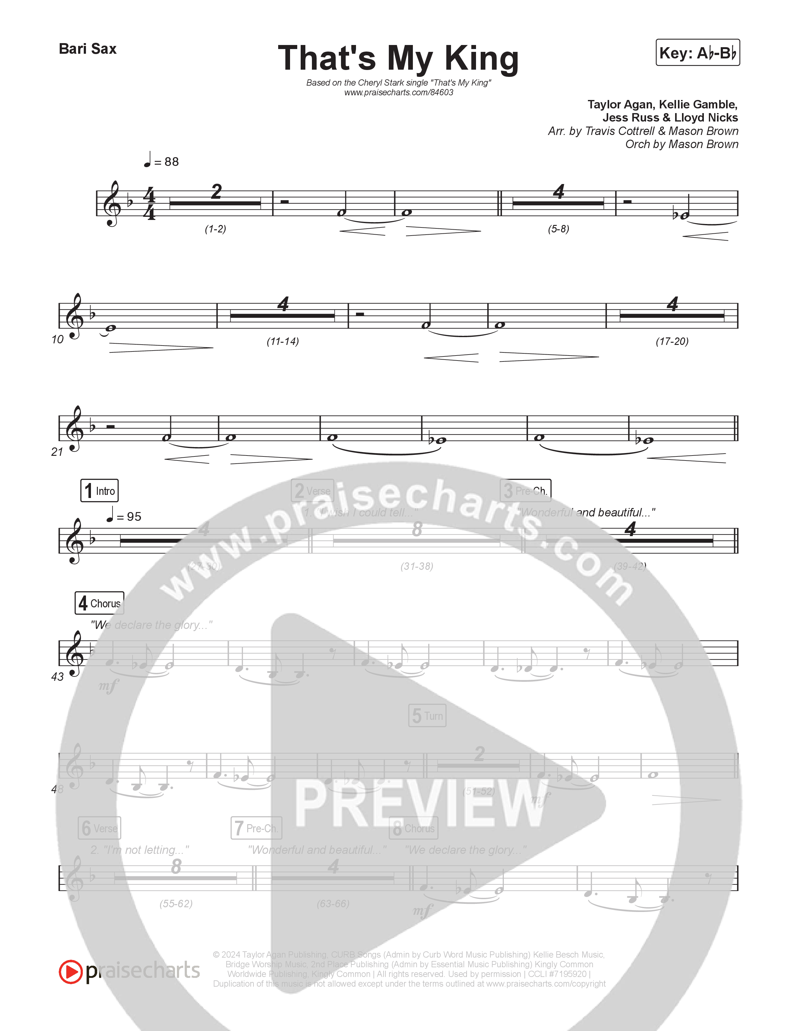 That's My King (Choral/SATB) Bari Sax Sheet Music PDF (Cheryl Stark / Arr. Travis Cottrell / Orch. Mason Brown)