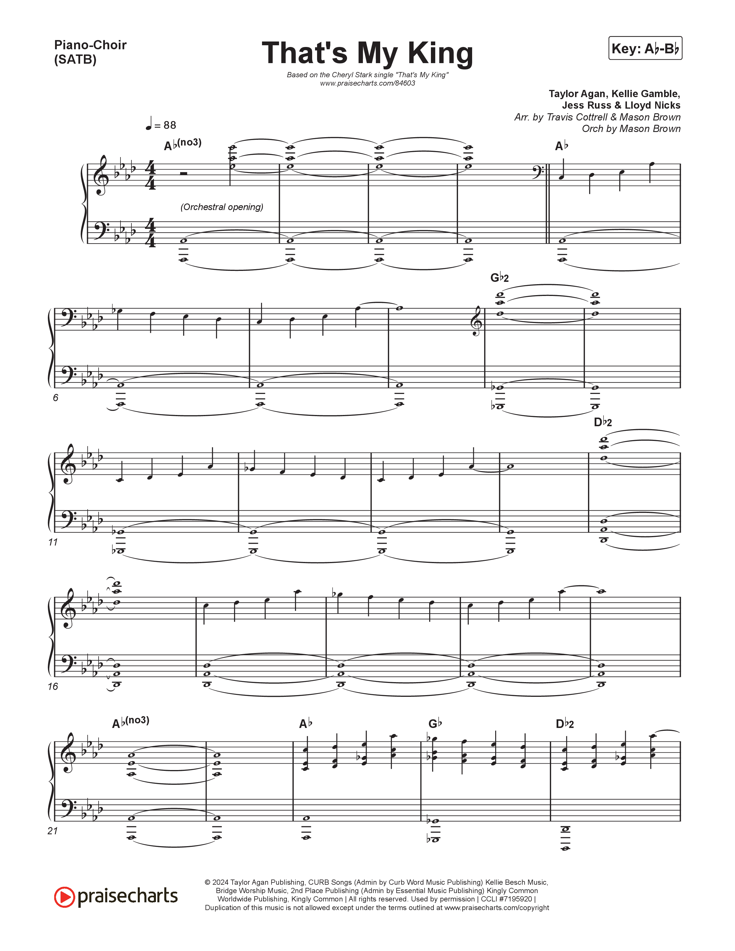That's My King (Choral/SATB) Sheet Music PDF (Cheryl Stark / Arr. Travis Cottrell / Orch. Mason Brown)