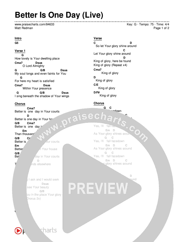 Better Is One Day (Live) Chords PDF (Matt Redman)