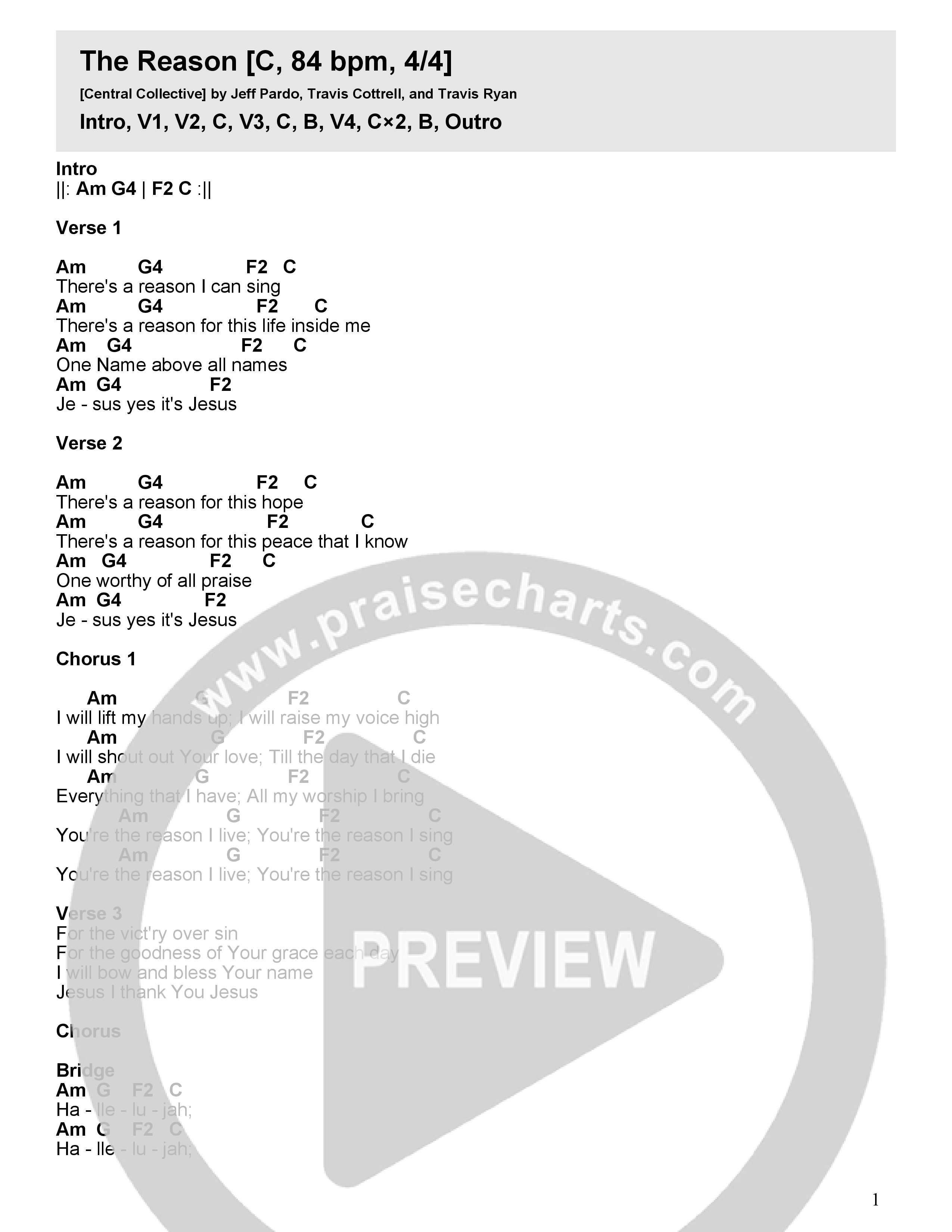 Download the PDF Chord Charts for The Reason by Central Collective / Travis Cottrell, from the album The Reason.