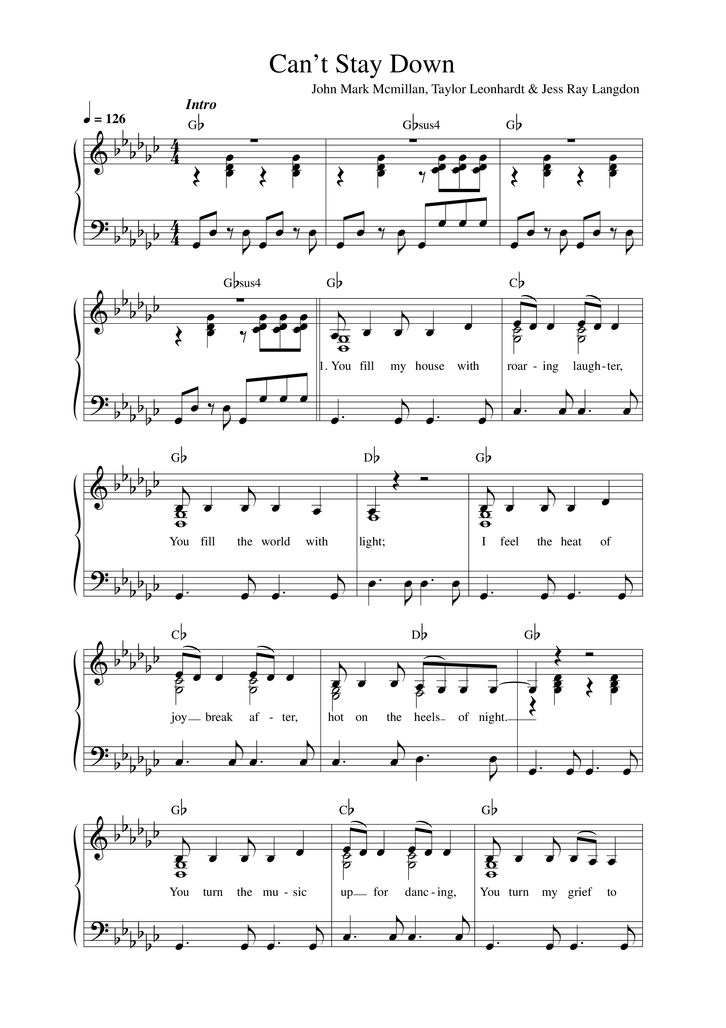 Download the sheet music for Can't Stay Down (Live) by Mission House / Jess Ray / Taylor Leonhardt, from the album The Whole Earth Is Full Of Your Glory + Can't Stay Down.