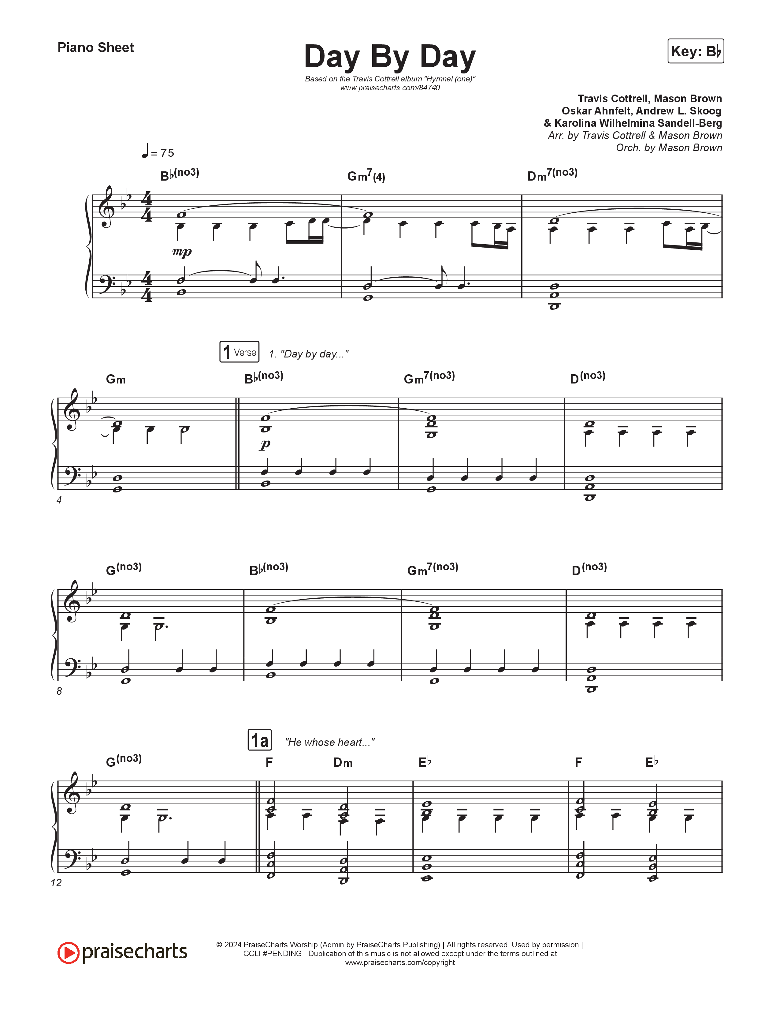 Download the piano sheet for Day By Day (Choral/SATB) by Travis Cottrell / Lily Cottrell / Arr. Mason Brown, from the album Hymnal (one). This song was arranged by Travis Cottrell / Mason Brown in the key of Bb.