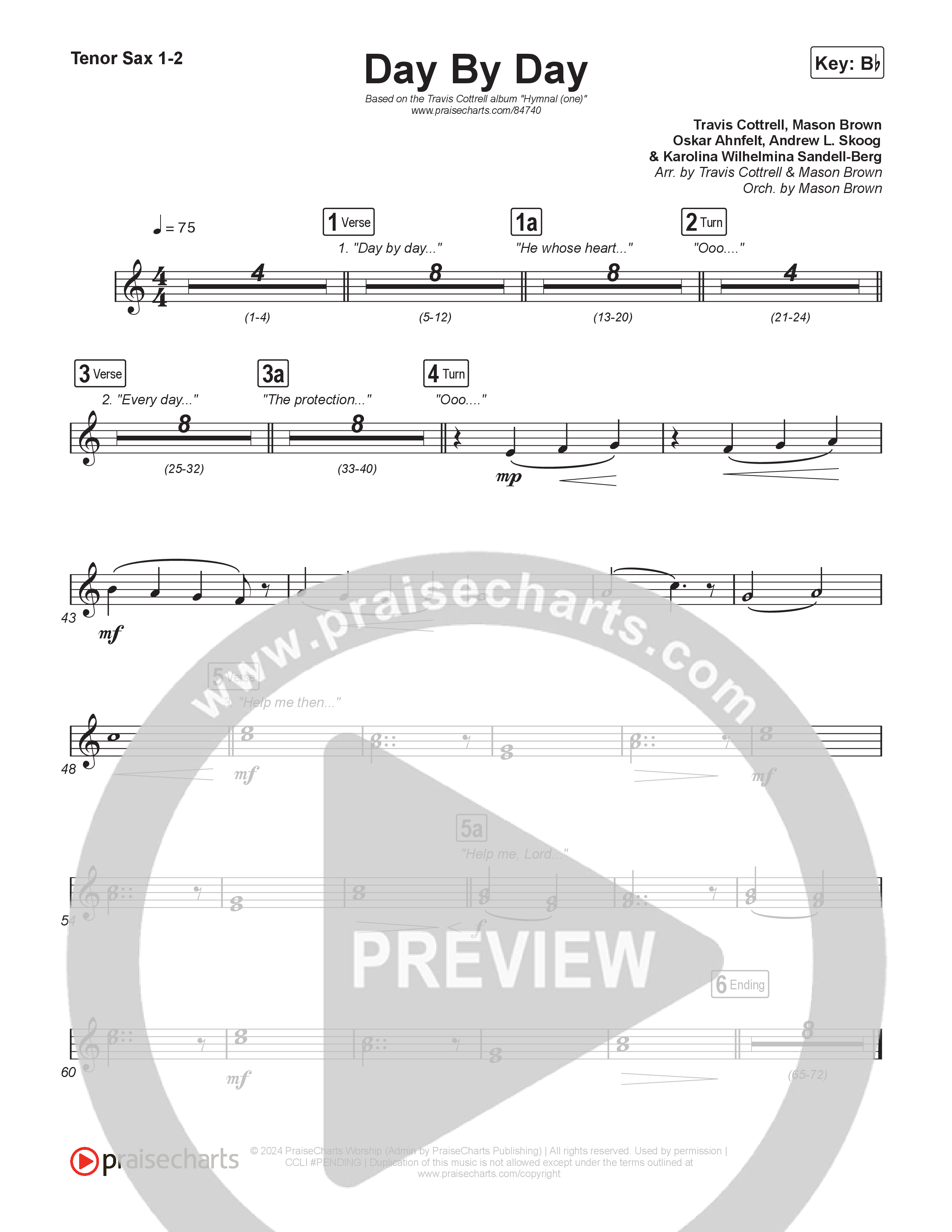 Day By Day (Choral/SATB) Sax Sheet Music PDF (Travis Cottrell / Lily Cottrell / Arr. Mason Brown)