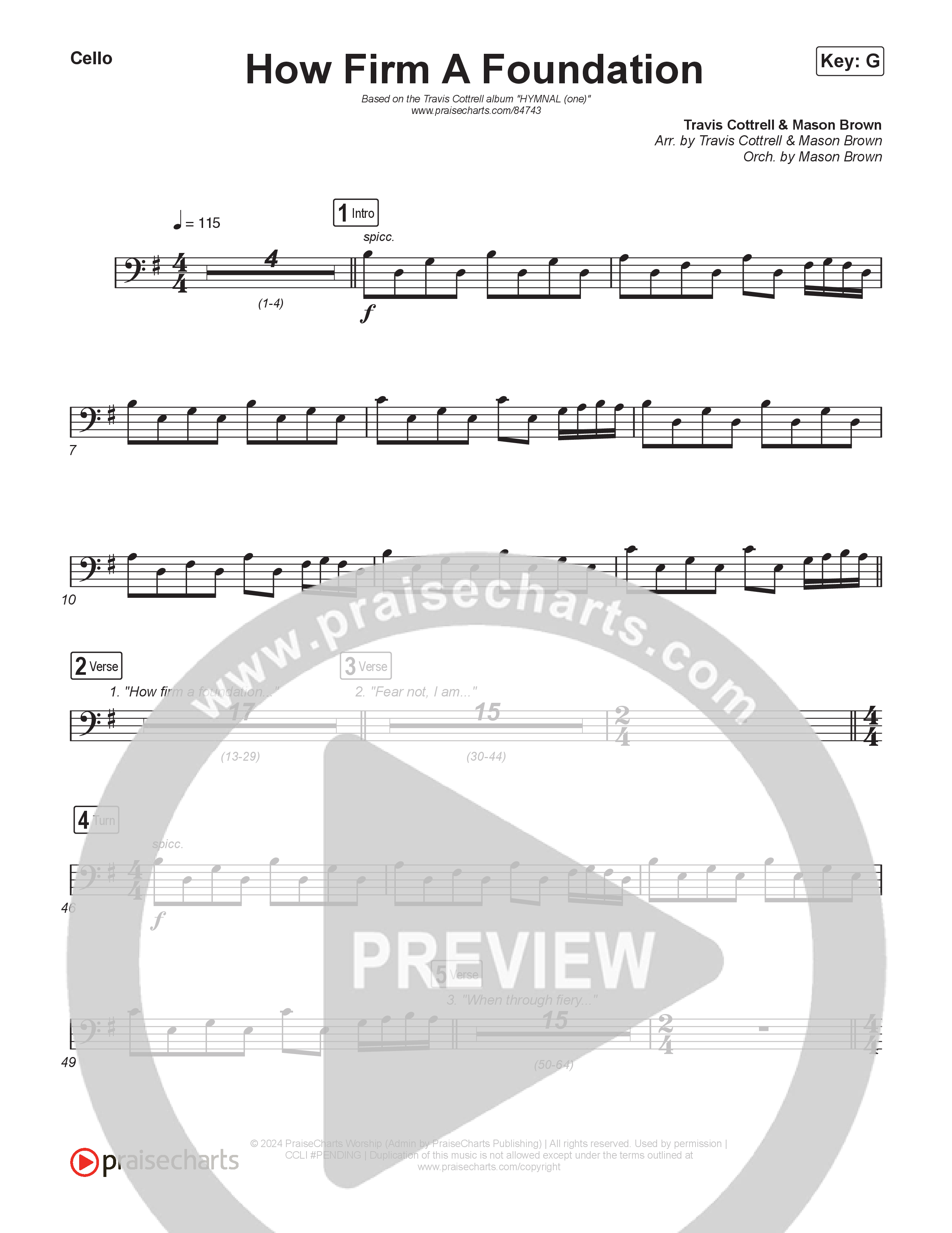 Download the Cello sheet music for How Firm A Foundation (Choral/SATB) by Travis Cottrell / Arr. Mason Brown, from the album Hymnal (one). This song was arranged by Travis Cottrell / Mason Brown in the key of G.