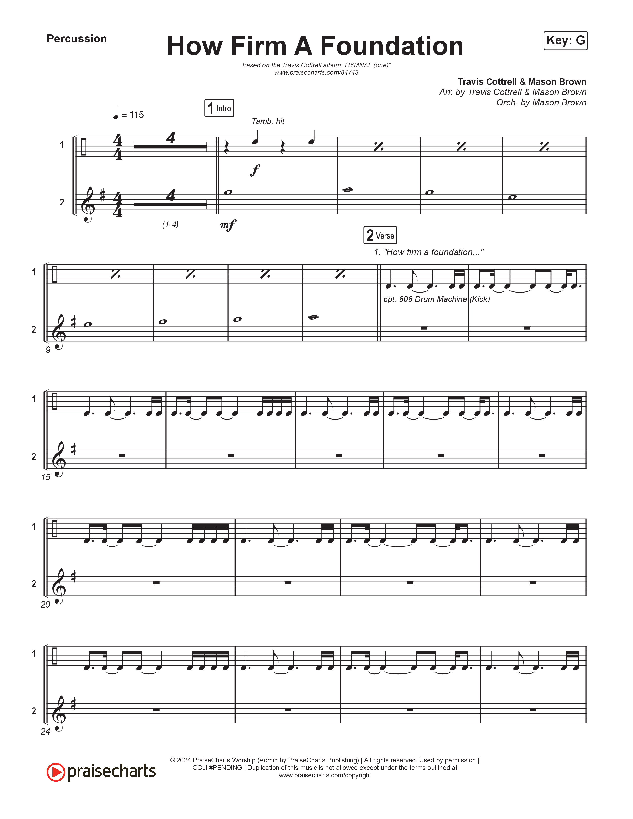 Download the percussion sheet music for How Firm A Foundation (Choral/SATB) by Travis Cottrell / Arr. Mason Brown, from the album Hymnal (one). This song was arranged by Travis Cottrell / Mason Brown in the key of G.