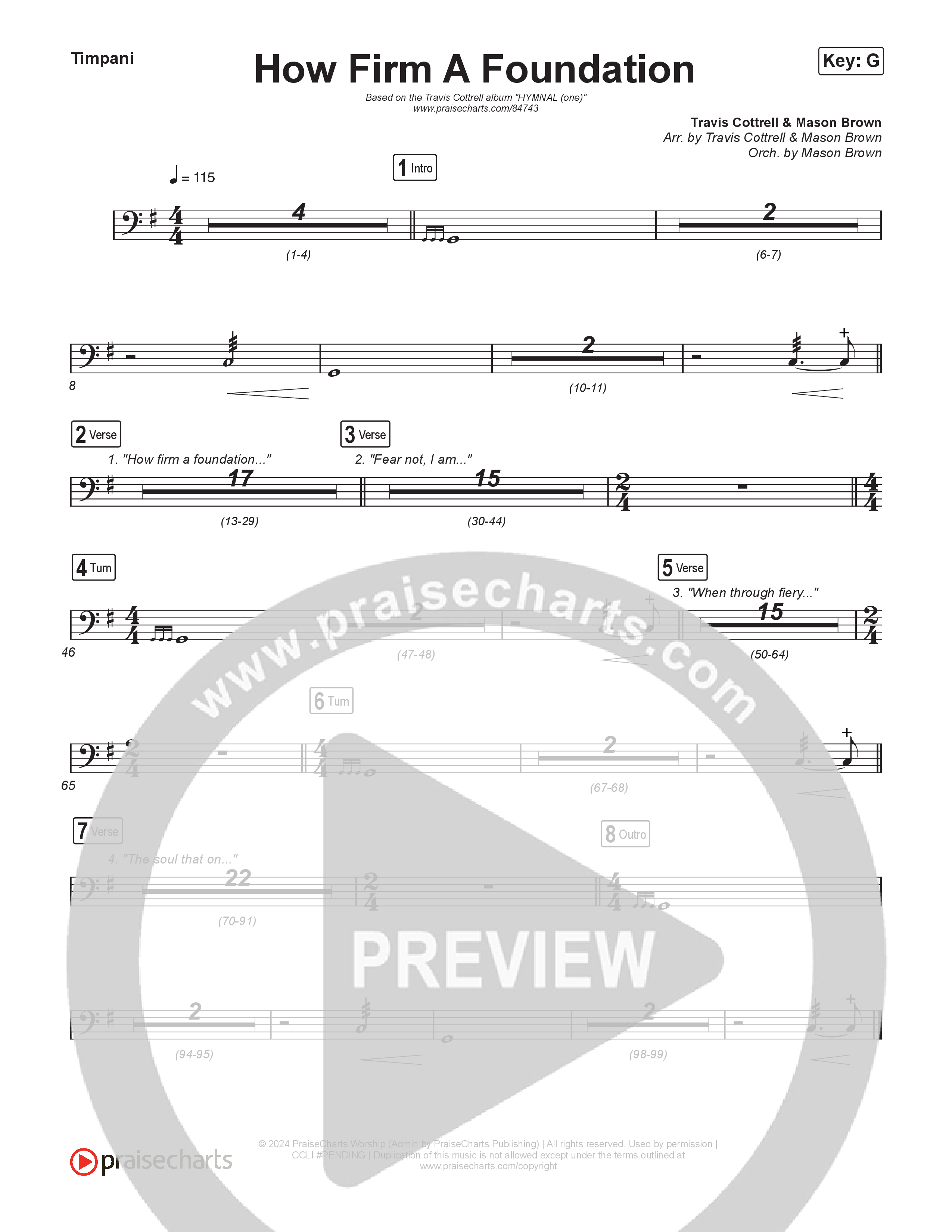 Download the Timpani sheet music for How Firm A Foundation (Choral/SATB) by Travis Cottrell / Arr. Mason Brown, from the album Hymnal (one). This song was arranged by Travis Cottrell / Mason Brown in the key of G.