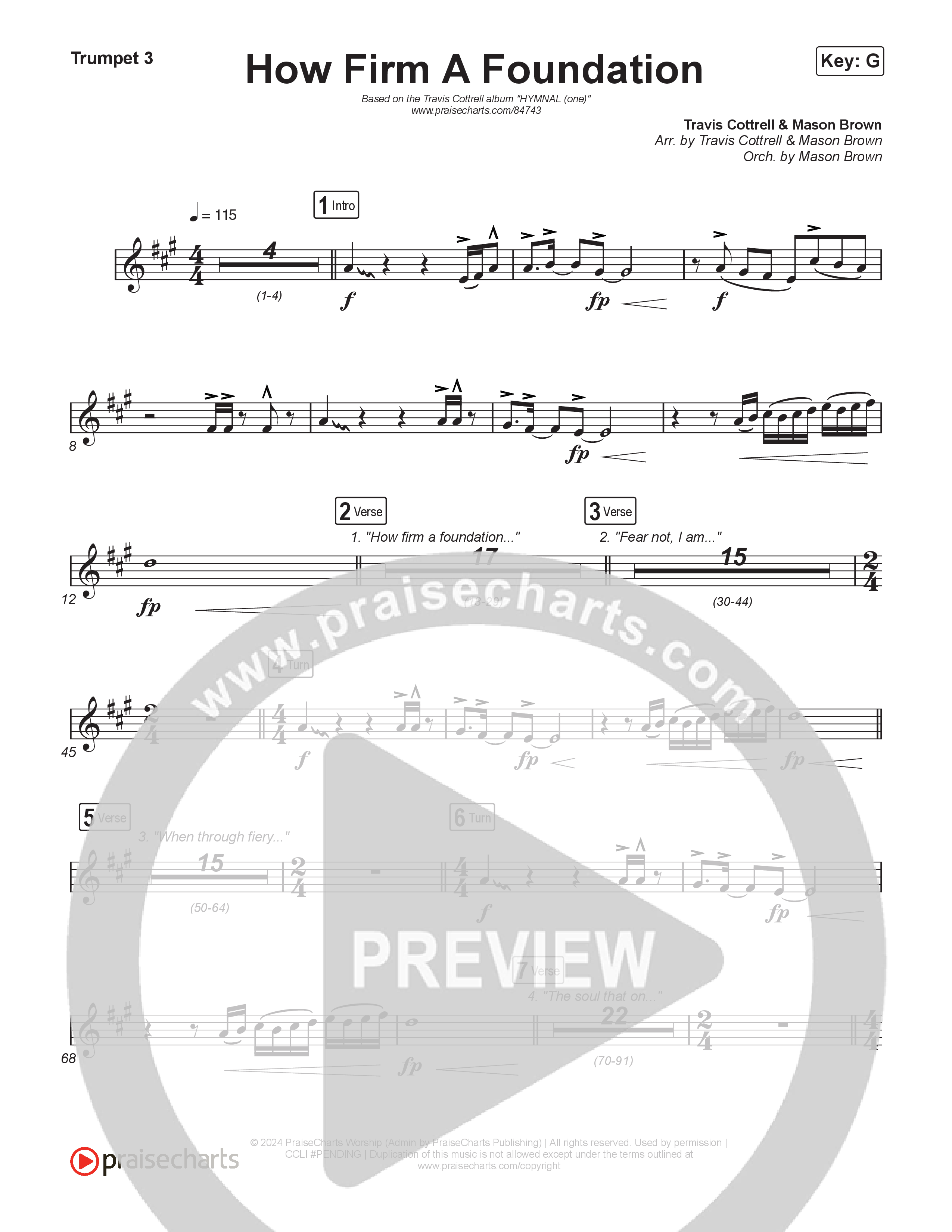 Download the Trumpet 3 sheet music for How Firm A Foundation (Choral/SATB) by Travis Cottrell / Arr. Mason Brown, from the album Hymnal (one). This song was arranged by Travis Cottrell / Mason Brown in the key of G.