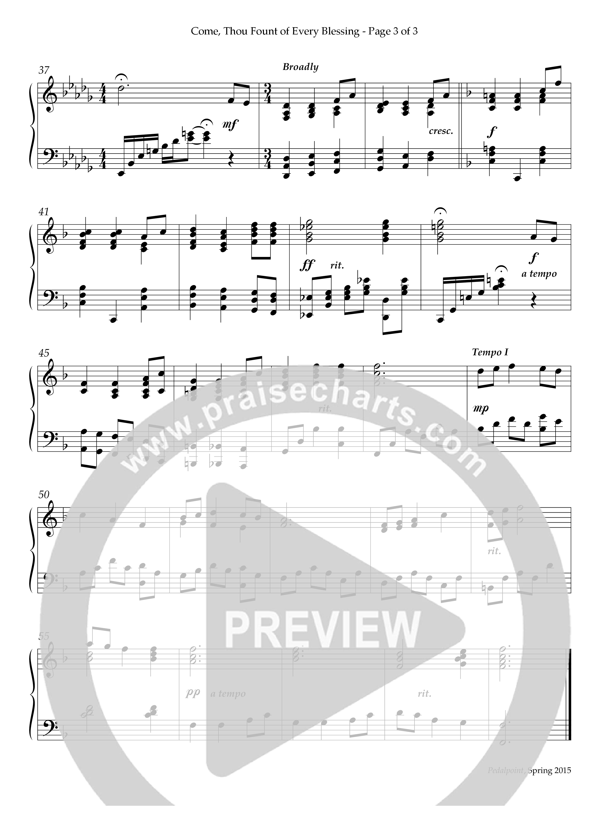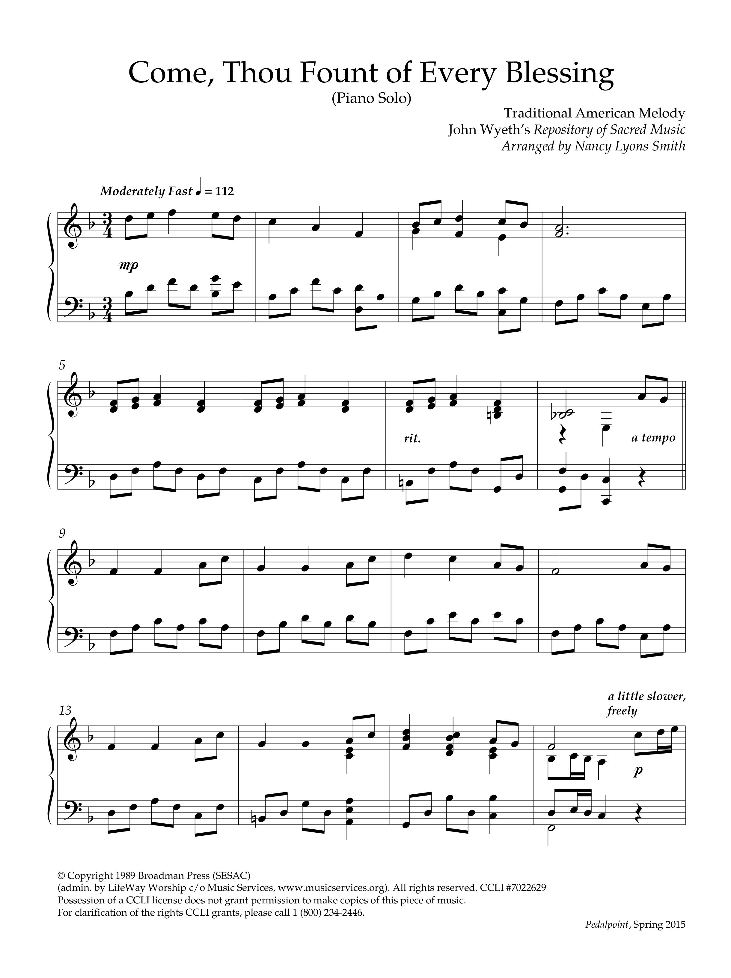 Download the piano sheet for Come Thou Fount Of Every Blessing (Instrumental) by Lifeway Worship / Arr. Nancy L. Smith, from the album PedalPoint Spring 2015. This song was arranged by Nancy L. Smith in the key of F.
