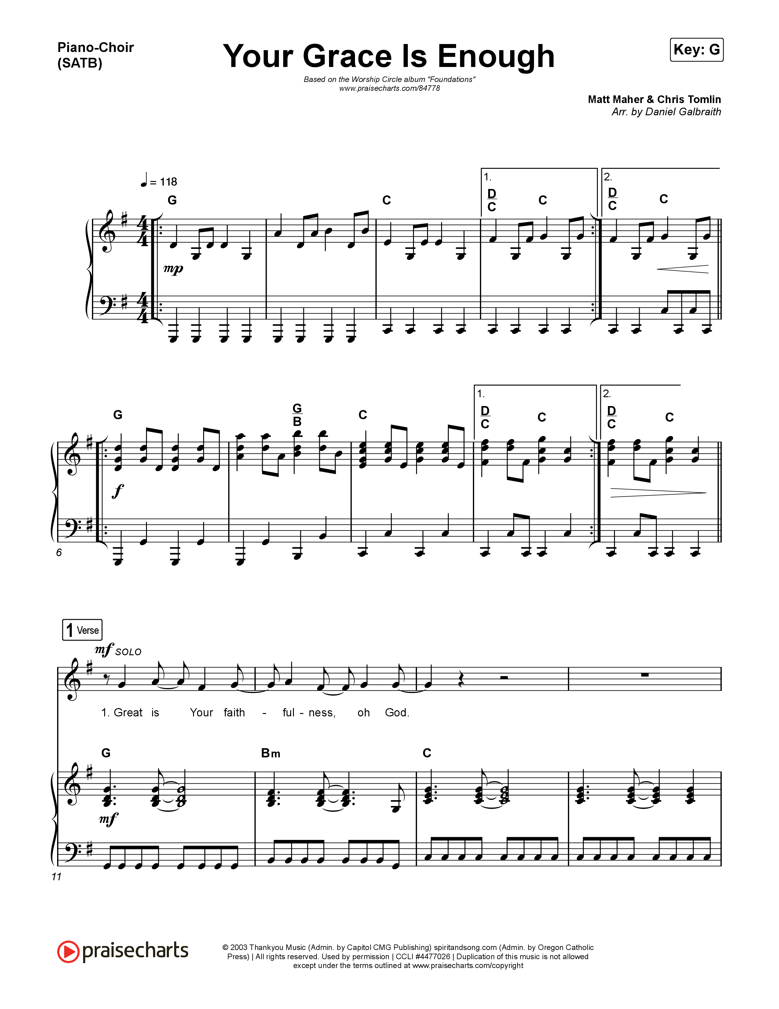 Download the PDF sheet music for Your Grace Is Enough (Live) by Worship Circle / Matt Maher, from the album Foundations. This song was arranged by Daniel Galbraith in the key of Ab, G.