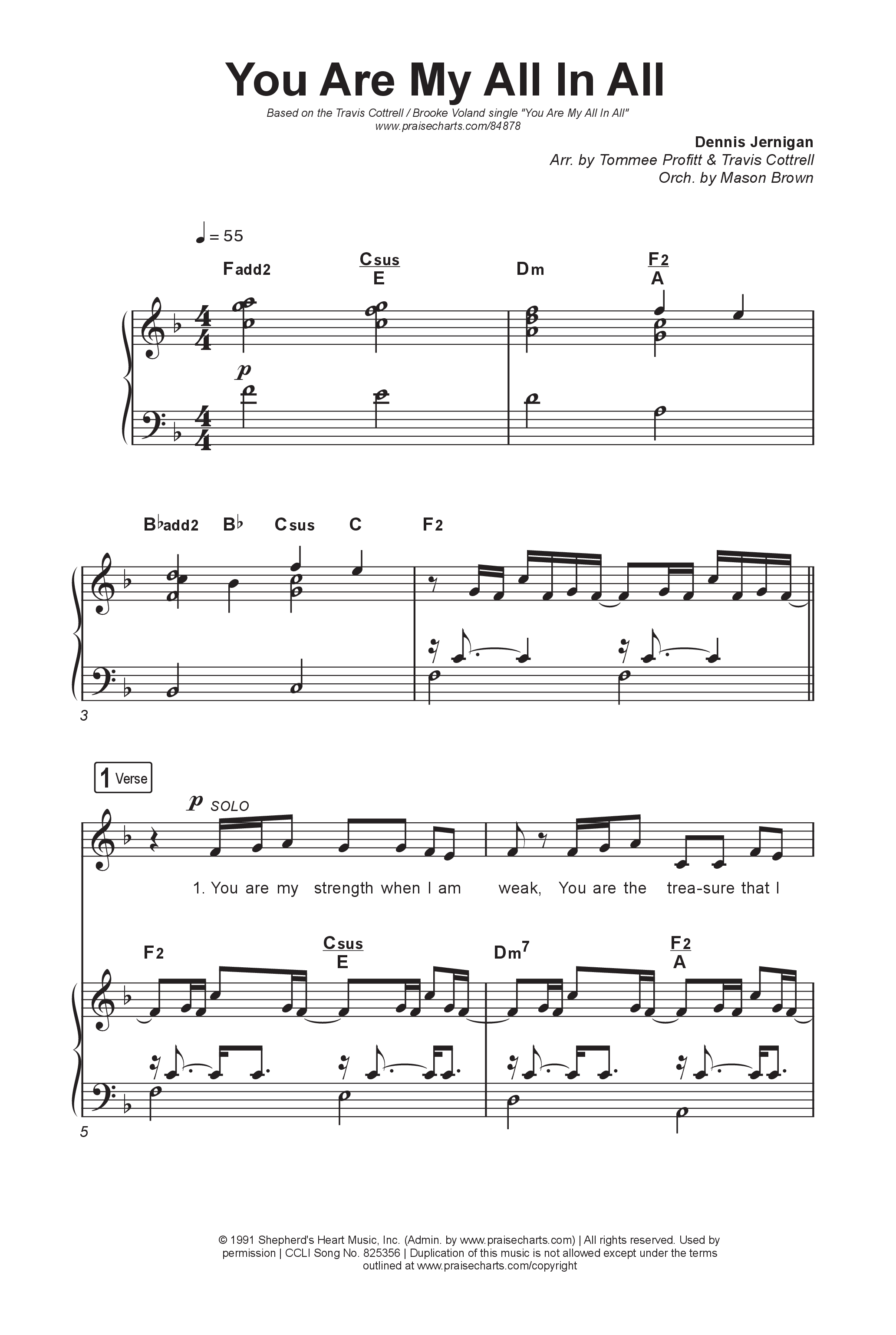 Download the Octavo SATB sheet music for You Are My All In All (Choral/SATB) by Travis Cottrell / Brooke Voland / Arr. Tommee Profitt / Orch. Mason Brown, from the album You Are My All In All. This song was arranged by Travis Cottrell / Tommee Profitt / Mason Brown in the key of F.