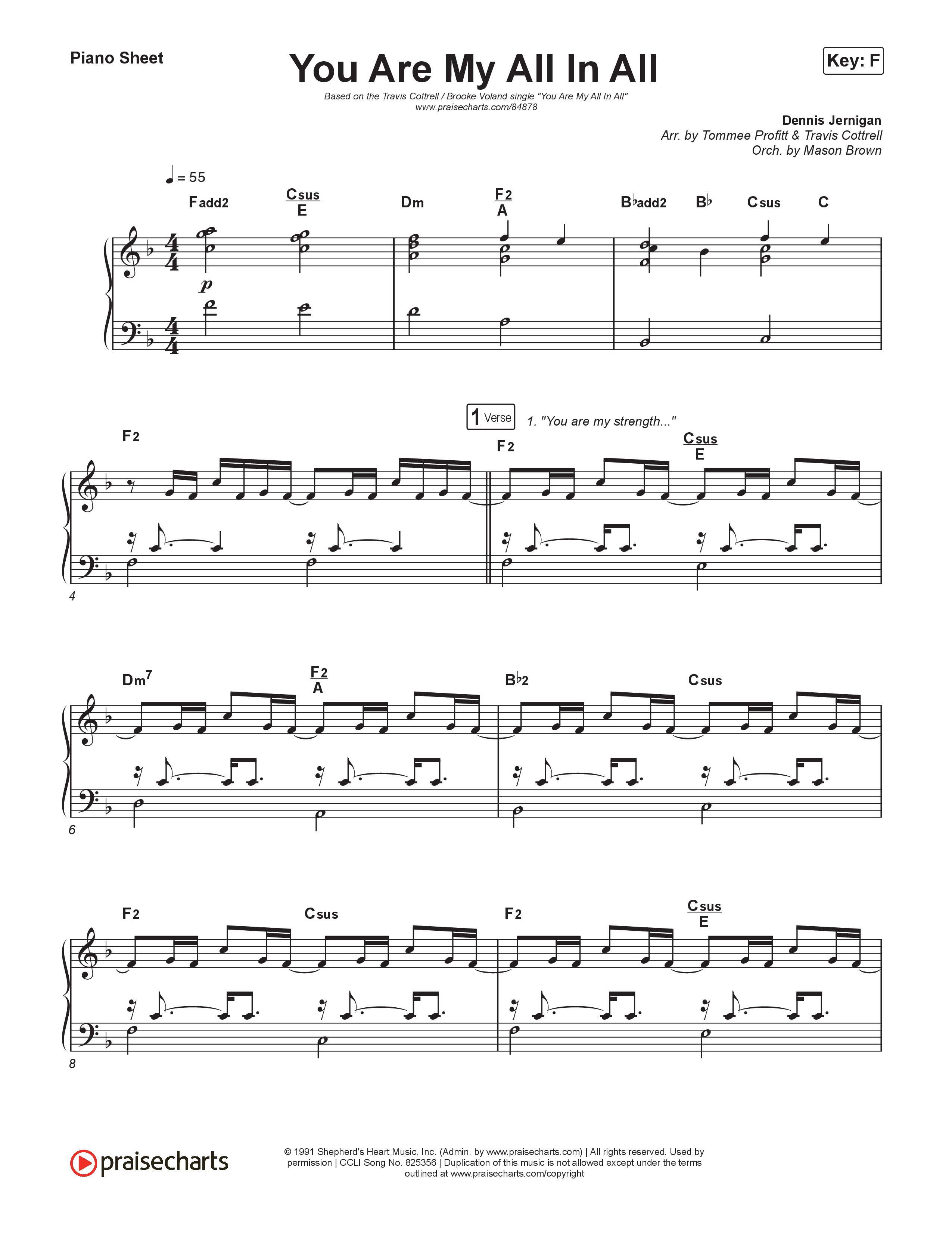 Download the piano sheet for You Are My All In All (Choral/SATB) by Travis Cottrell / Brooke Voland / Arr. Tommee Profitt / Orch. Mason Brown, from the album You Are My All In All. This song was arranged by Travis Cottrell / Tommee Profitt / Mason Brown in the key of F.