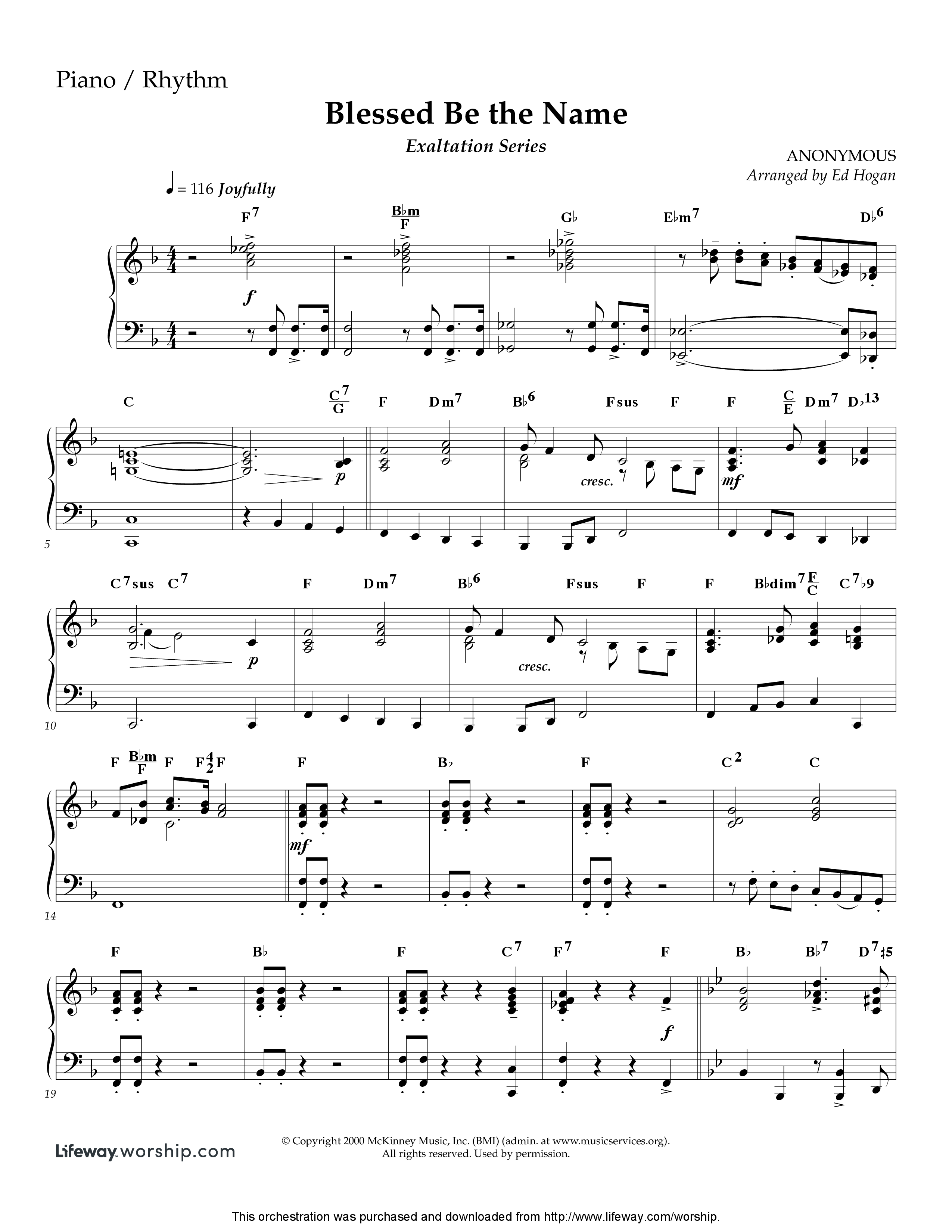 Download the Orchestration for Blessed Be The Name (Instrumental) by Lifeway Worship / Arr. Ed Hogan, from the album Exaltation Series. This song was arranged by Ed Hogan in the key of F.