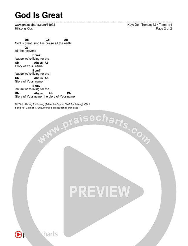 God Is Great Chords PDF (Hillsong Kids)