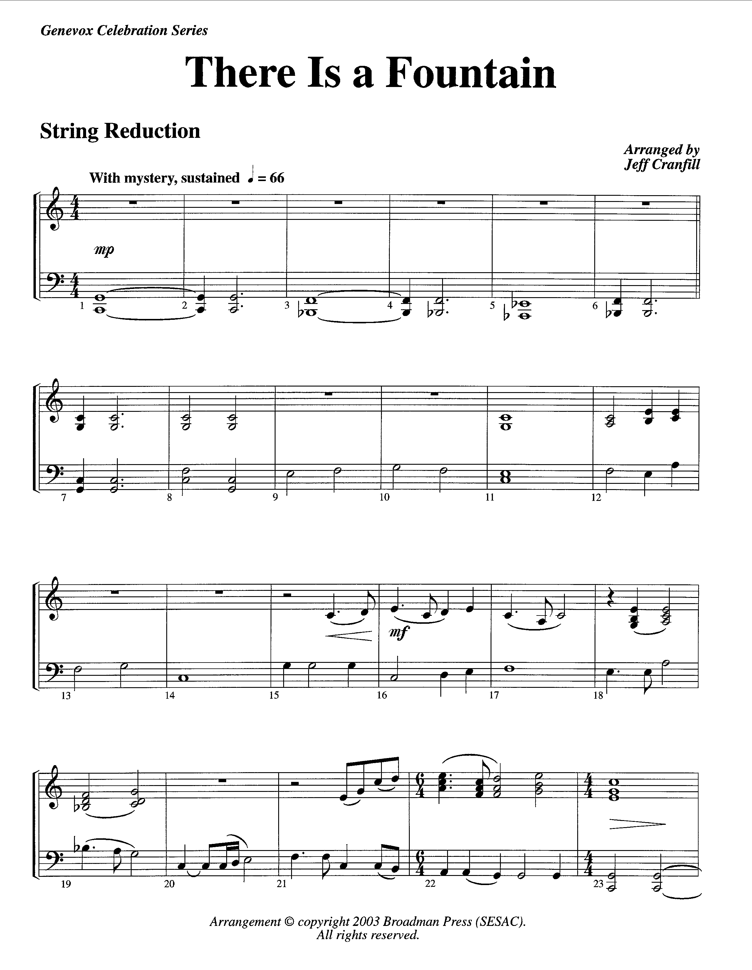 There Is A Fountain (Instrumental) String Reduction Sheet Music PDF (Lifeway Worship / Arr. Jeff Cranfill)