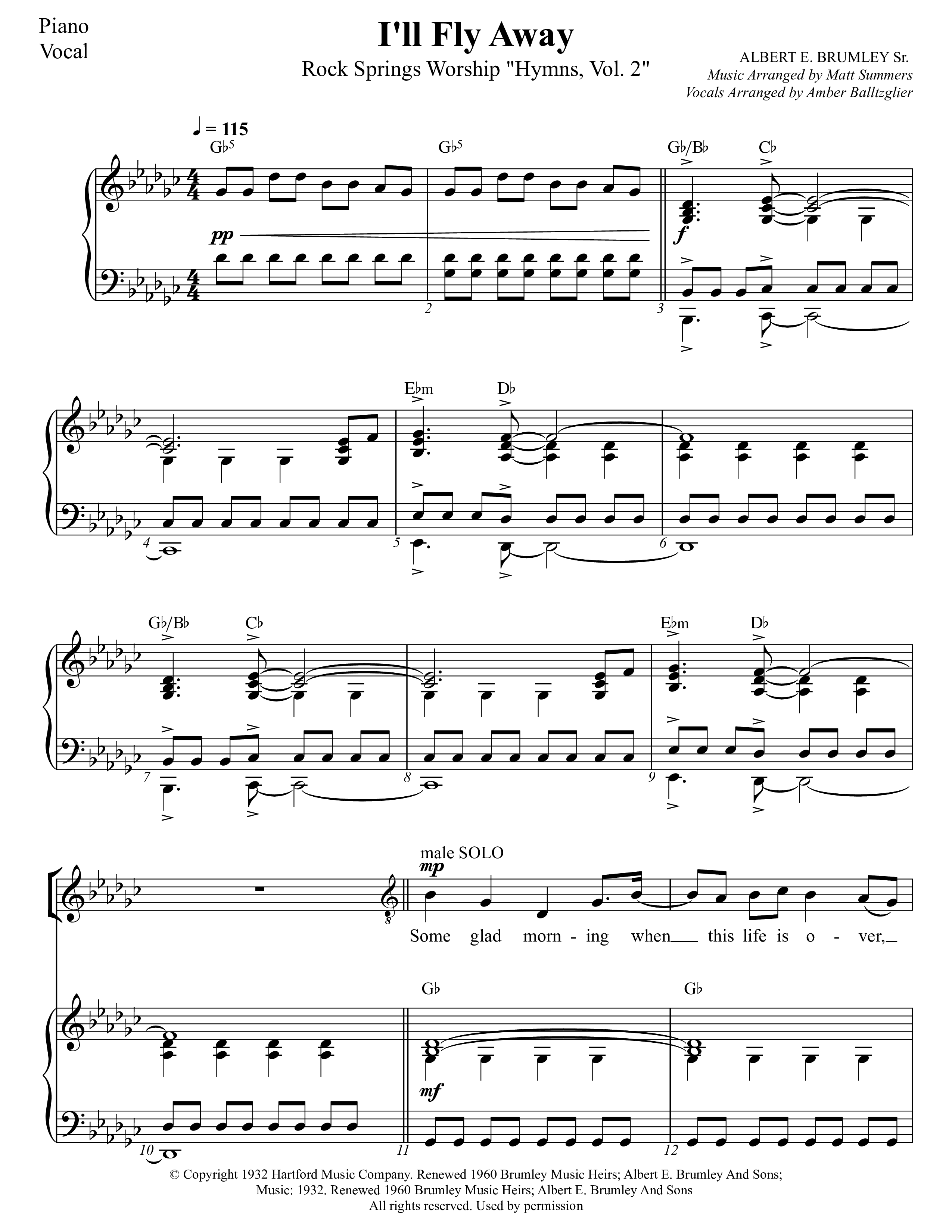 I'll Fly Away Piano/Vocal (Rock Springs Worship / Heath Balltzglier / Arr. Matt Summers / Arr. Amber Balltzglier)