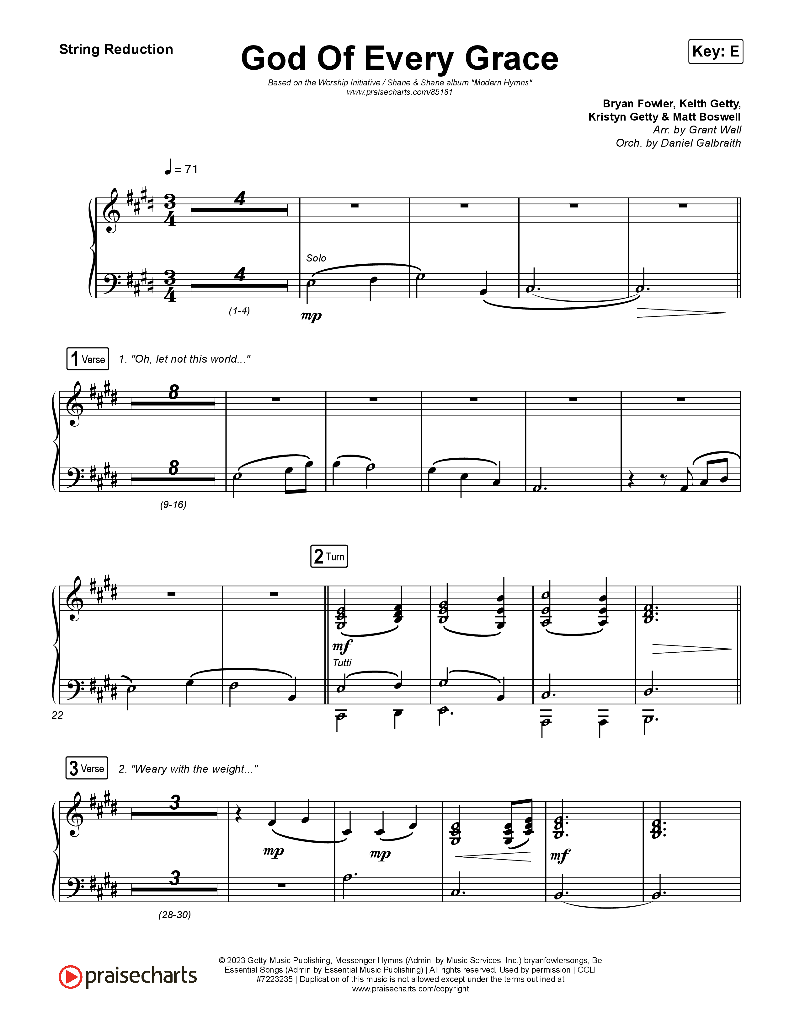 Download the String Reduction sheet music for God Of Every Grace by Shane & Shane, from the album Modern Hymns. This song was arranged by Grant Wall / Daniel Galbraith in the key of E, Eb.