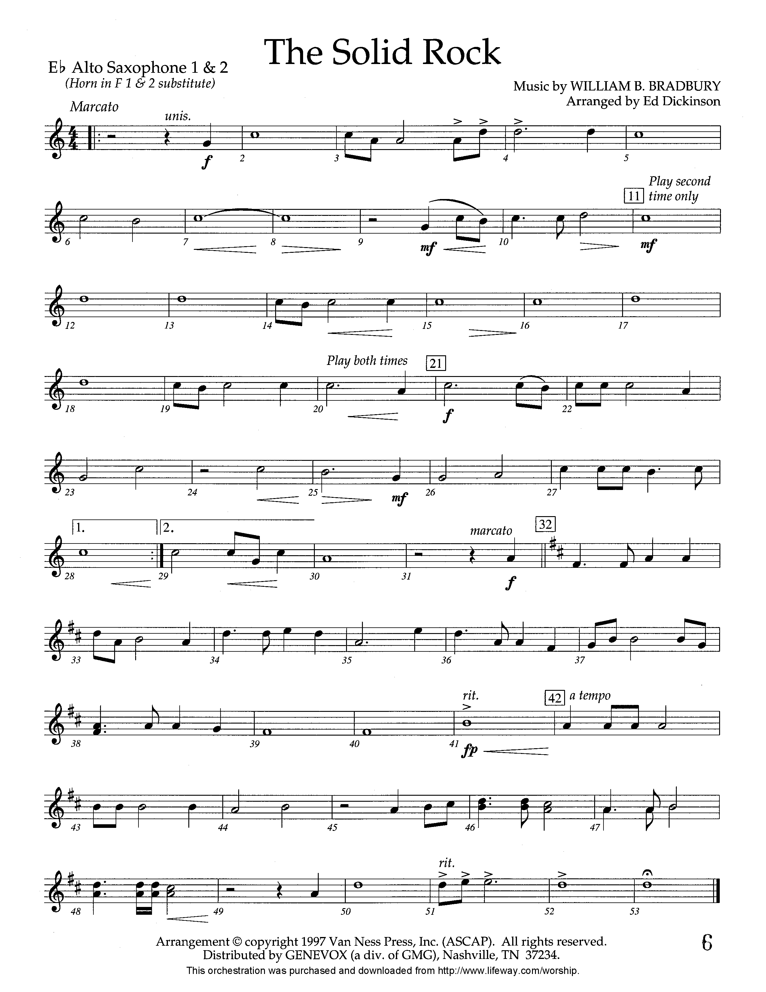 Download the Alto Sax 1,2 sheet music for The Solid Rock (Instrumental) by Lifeway Worship / Arr. Ed Dickinson, from the album Jubilation Series. This song was arranged by Ed Dickinson in the key of Eb.
