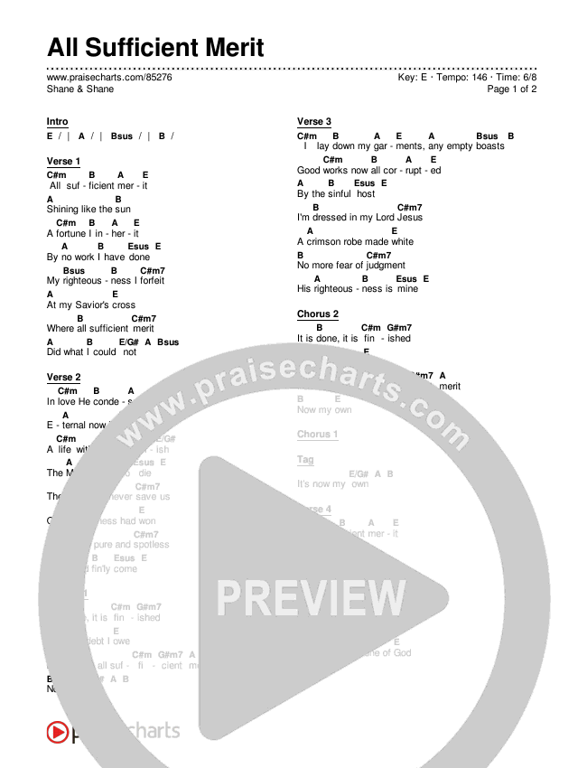 All Sufficient Merit Chords PDF (Shane & Shane)