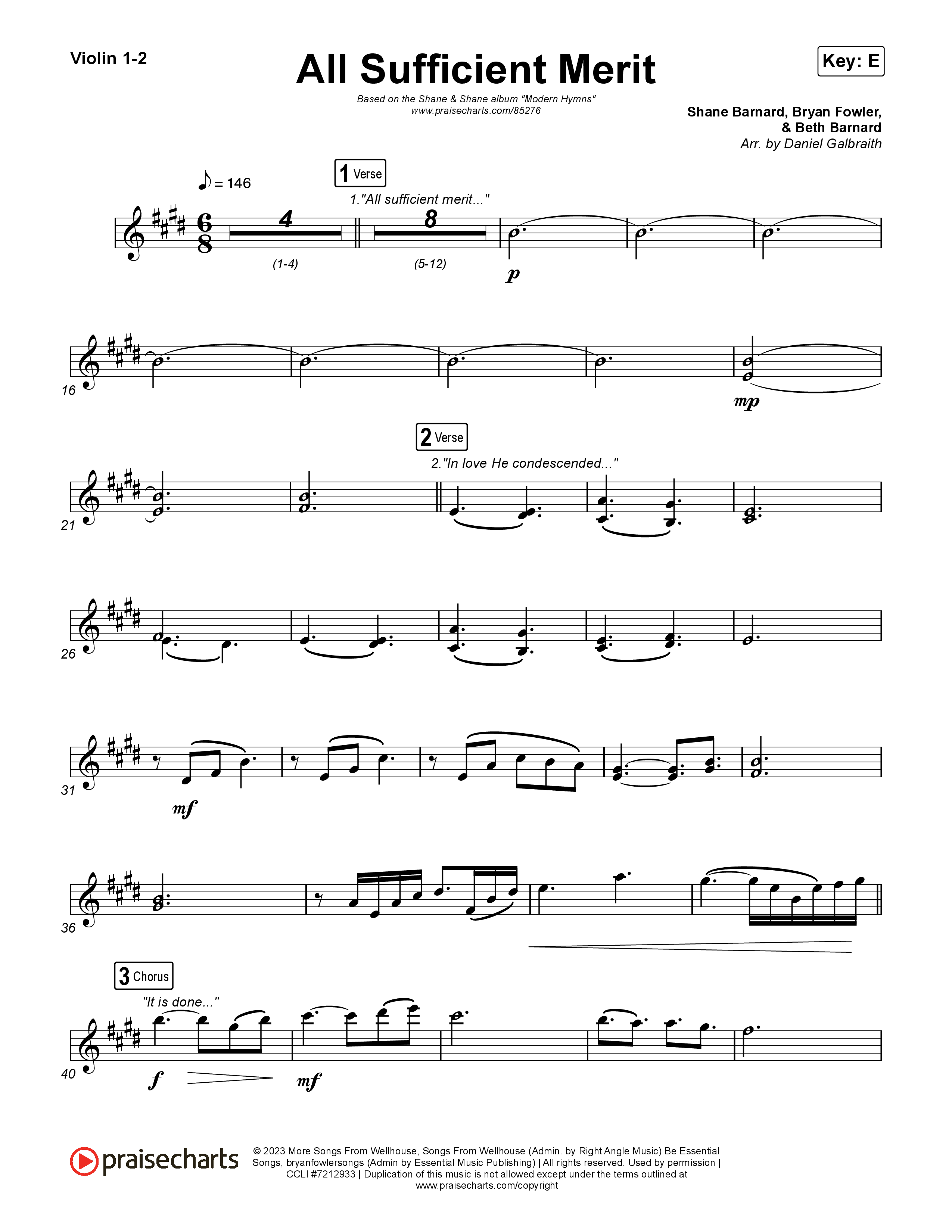 Download the Orchestration string parts for All Sufficient Merit by Shane & Shane, from the album Modern Hymns. This song was arranged by Daniel Galbraith in the key of E, F.