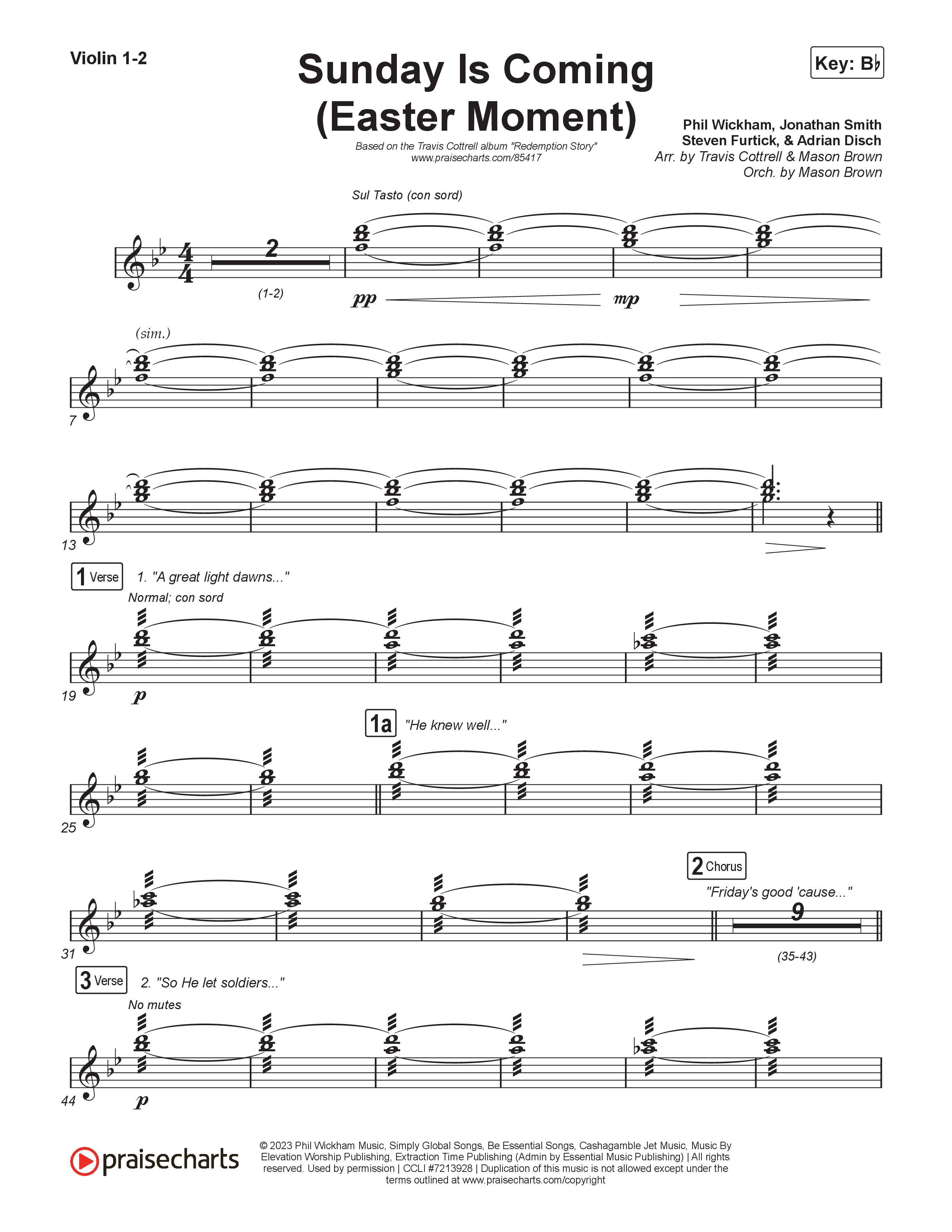 Download the Orchestration string parts for Sunday Is Coming (An Easter Moment) (Choral/SATB) by Travis Cottrell / Arr. Mason Brown, from the album Redemption Story. This song was arranged by Travis Cottrell / Mason Brown in the key of Bb.