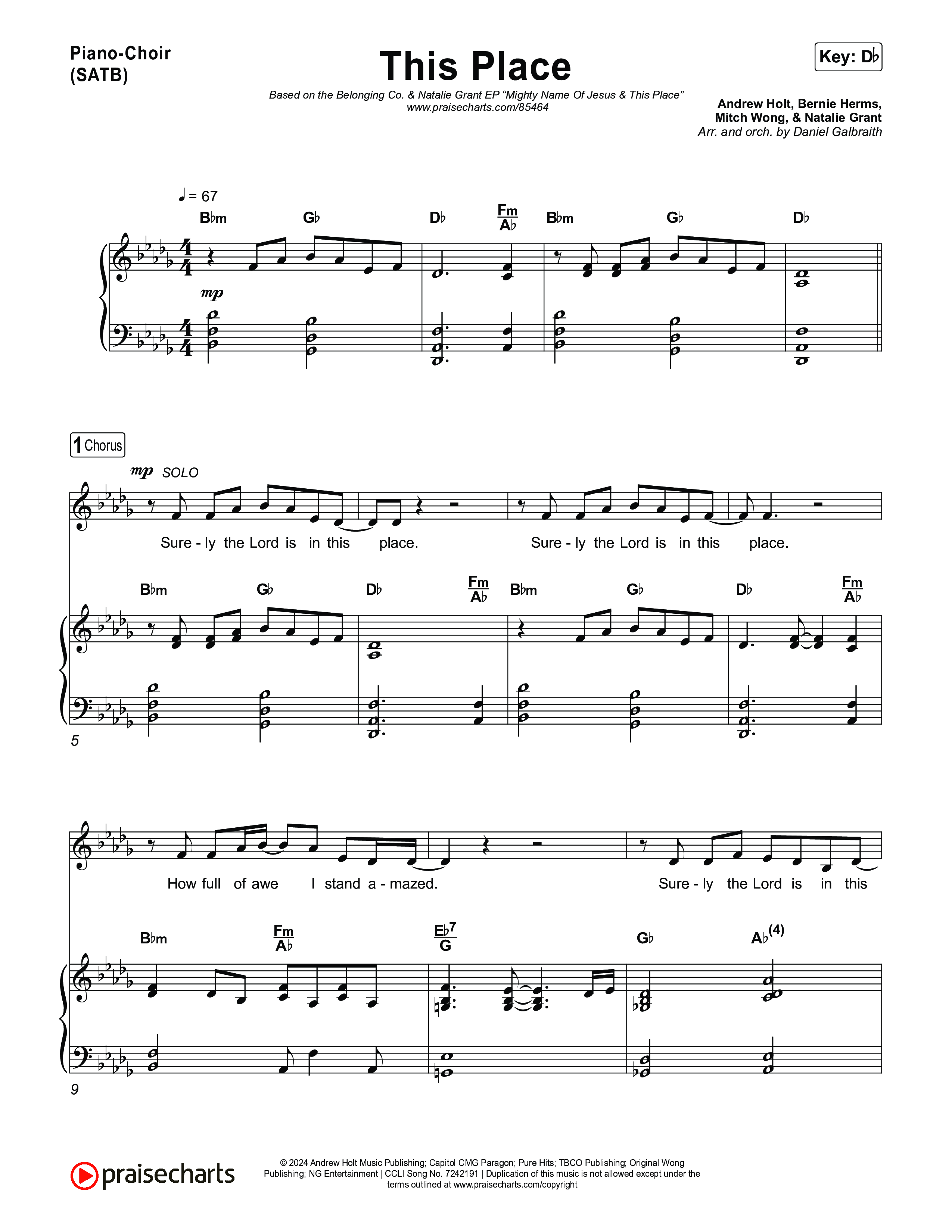 Download the PDF sheet music for This Place by The Belonging Co / Natalie Grant, from the album EDEN. This song was arranged by Daniel Galbraith in the key of C, Db.