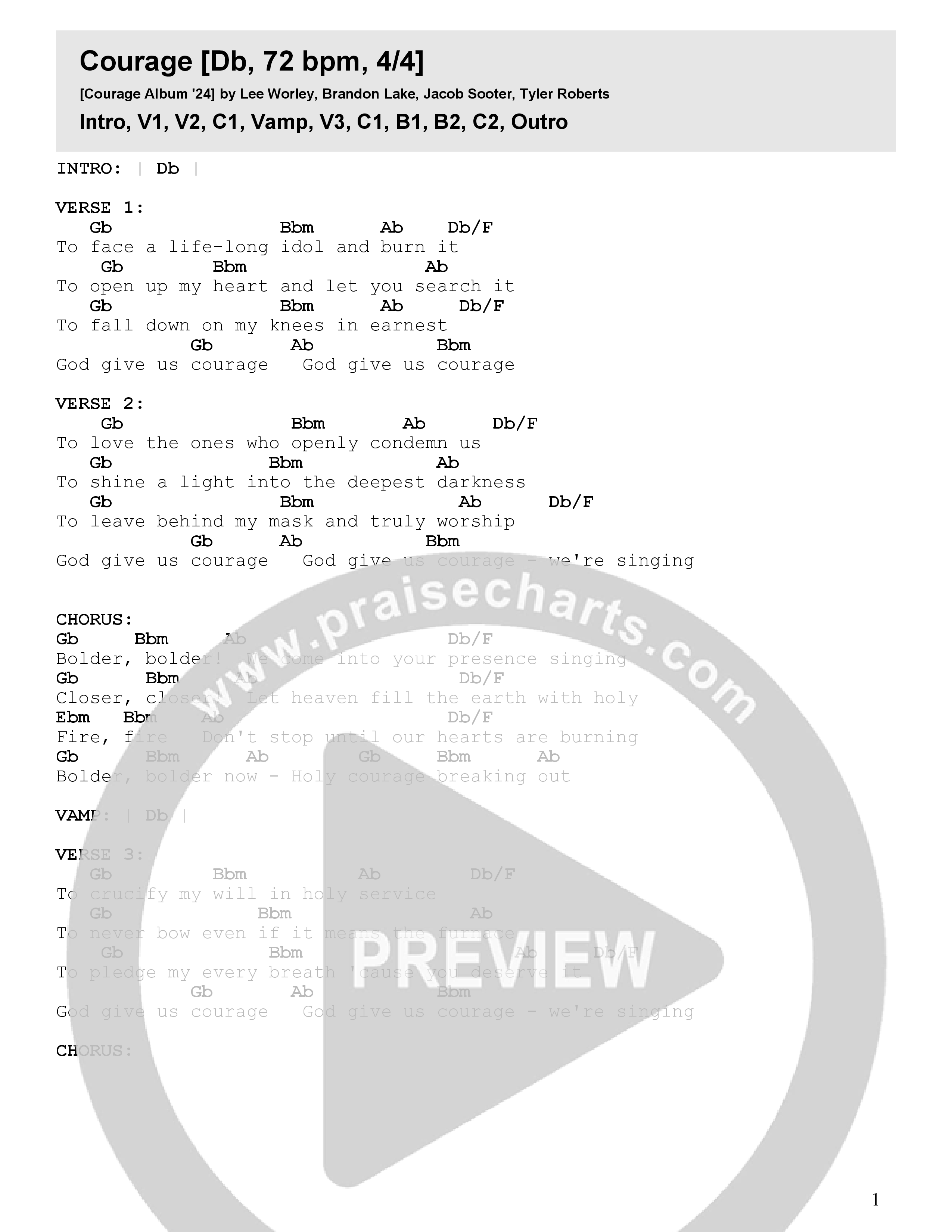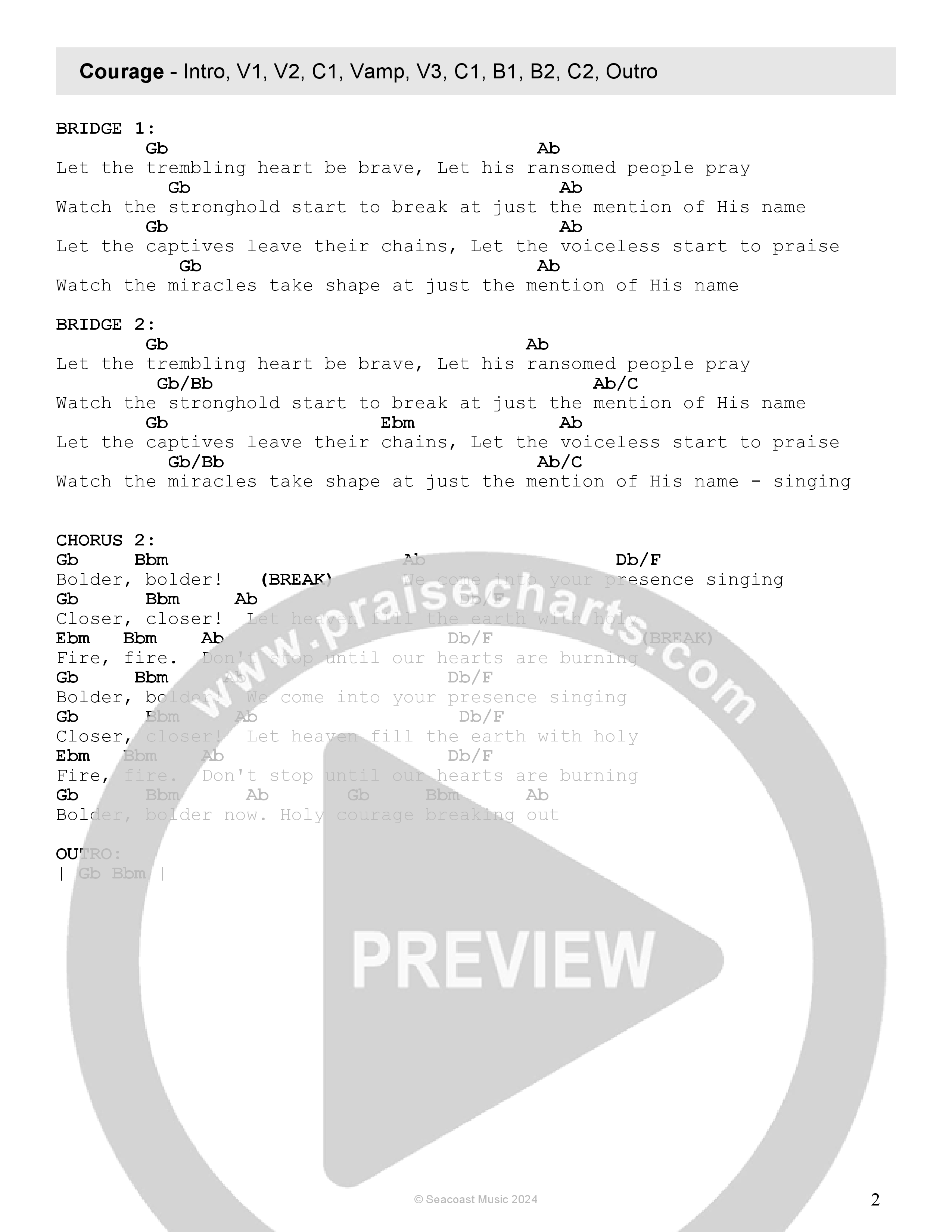Download the PDF Chord Charts for Courage by Seacoast / Brandon Lake, from the album Courage.