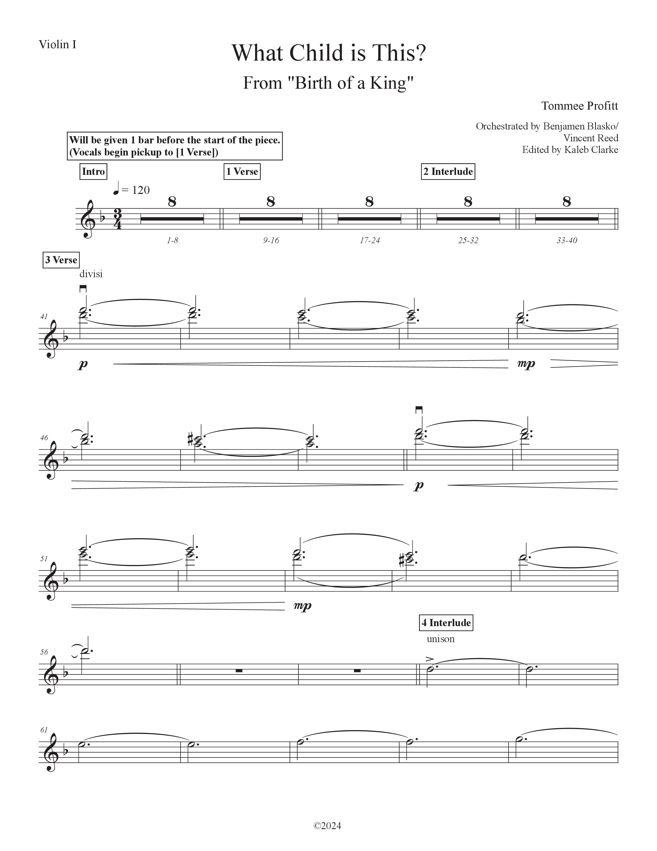 Download the Orchestration string parts for What Child Is This (Live) by Tommee Profitt / Evvie McKinney, from the album The Birth Of A King: Live In Concert. This song was arranged by Benjamen Blasko / Vincent Reed in the key of F.