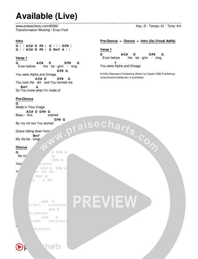 Available (Live) Chords PDF (Transformation Worship / Evan Ford)