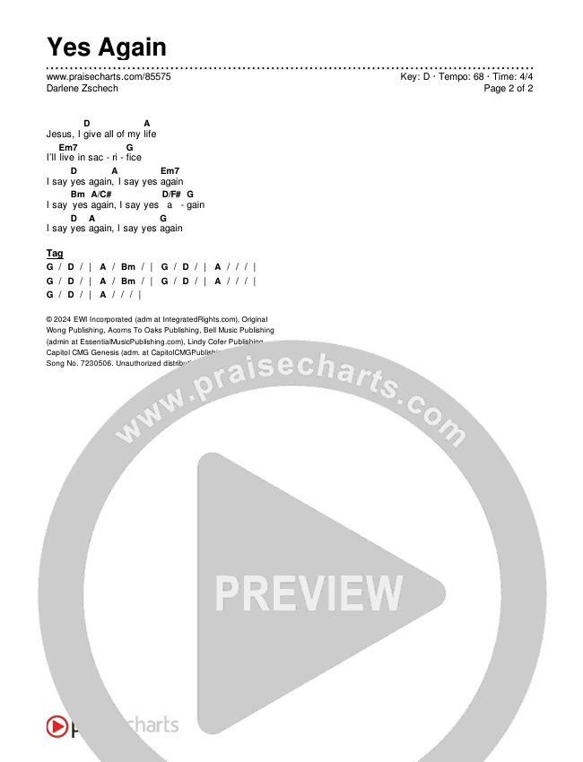 Yes Again Chord Chart (Darlene Zschech)