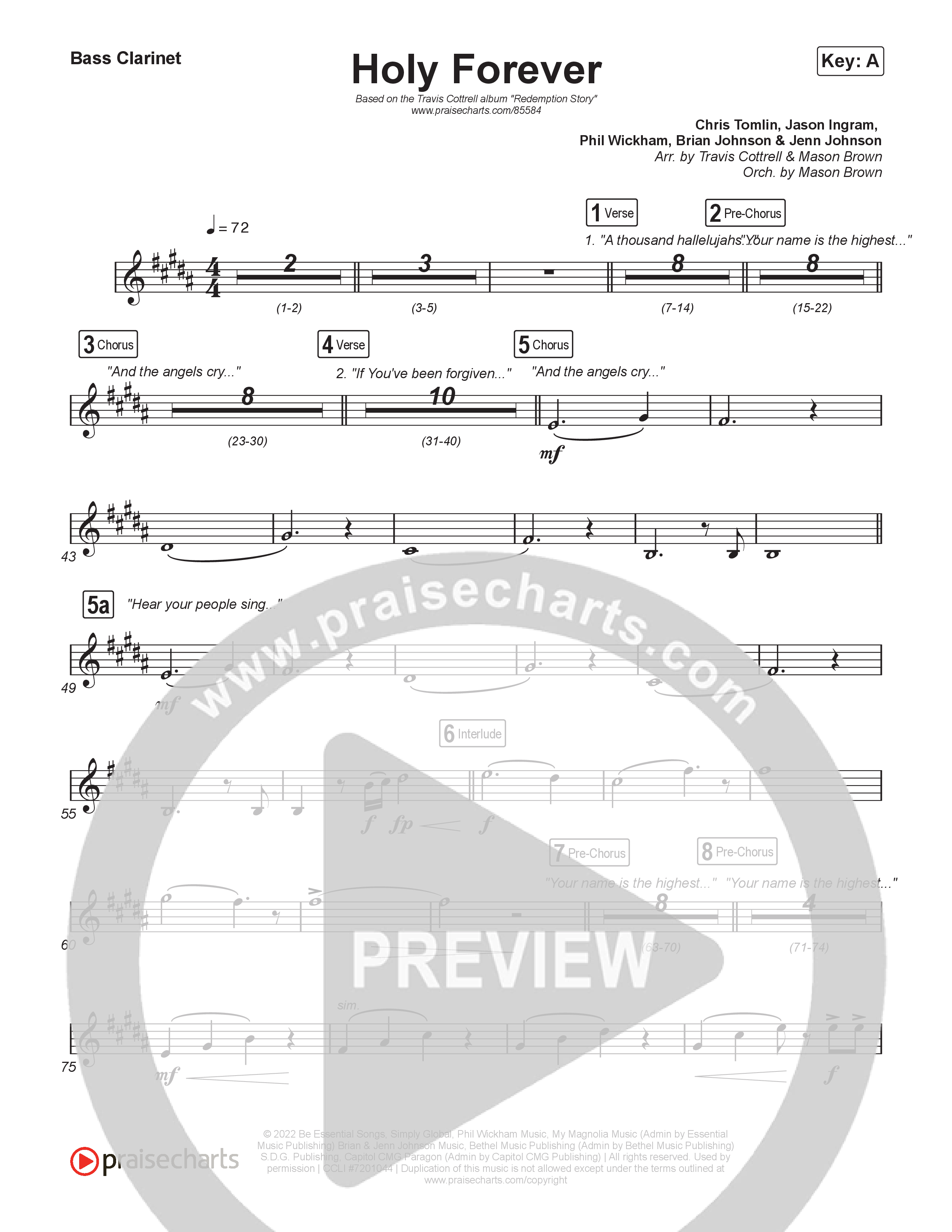 Download the Bass Clarinet sheet music for Holy Forever (Choral/SATB) by Travis Cottrell / Arr. Mason Brown, from the album Redemption Story. This song was arranged by Travis Cottrell / Mason Brown in the key of A.