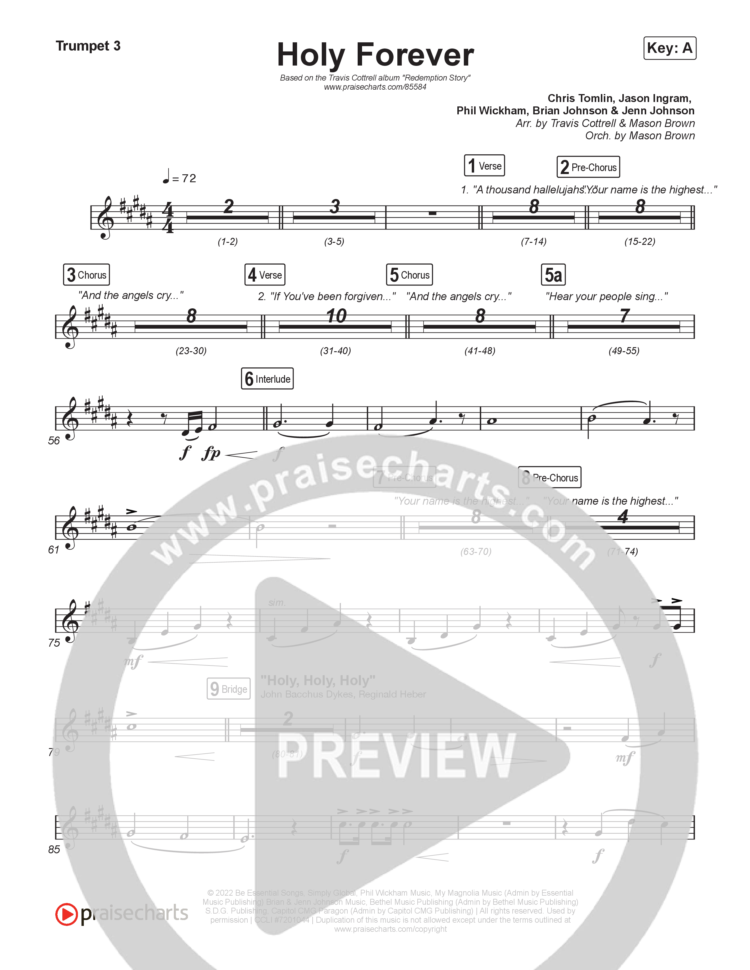 Download the Trumpet 3 sheet music for Holy Forever (Choral/SATB) by Travis Cottrell / Arr. Mason Brown, from the album Redemption Story. This song was arranged by Travis Cottrell / Mason Brown in the key of A.